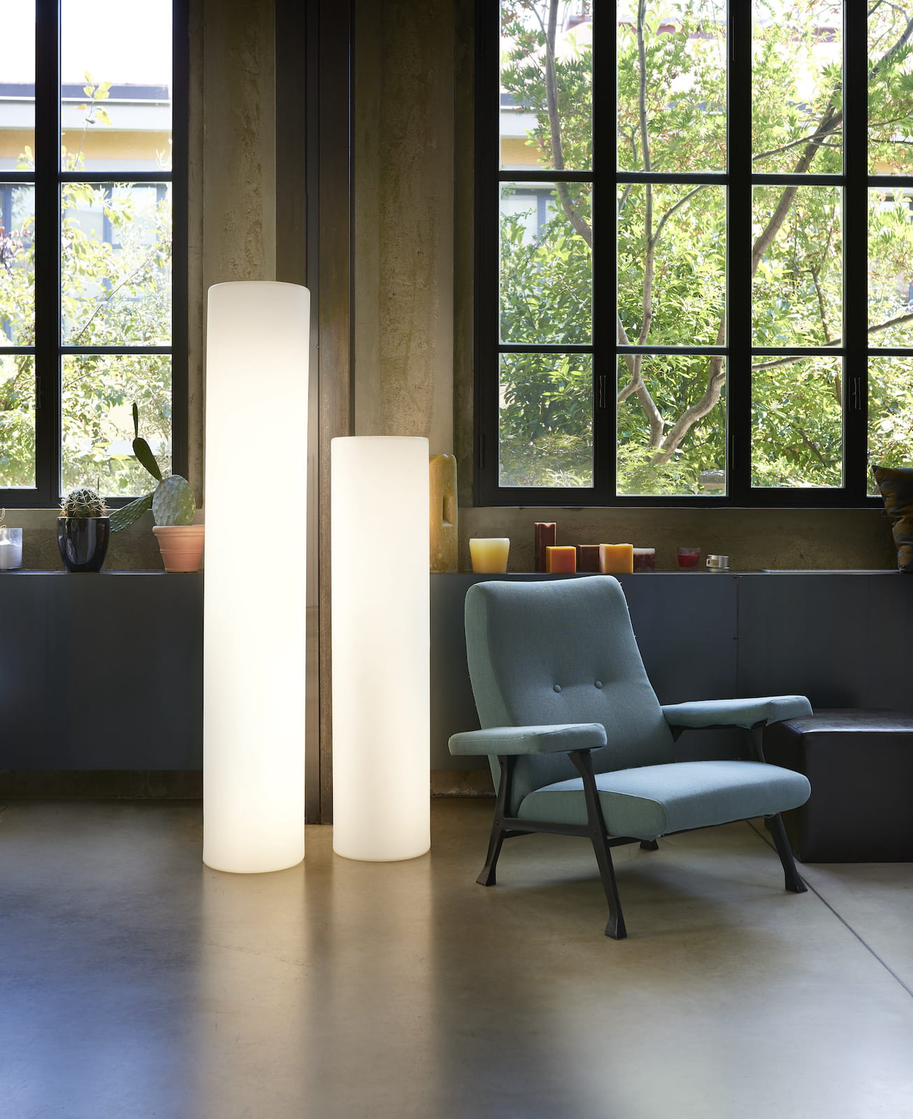 Fluo to podłogowa lampa o prostym i cylindrycznym kształcie, doskonała do każdego rodzaju mebli i wystroju.