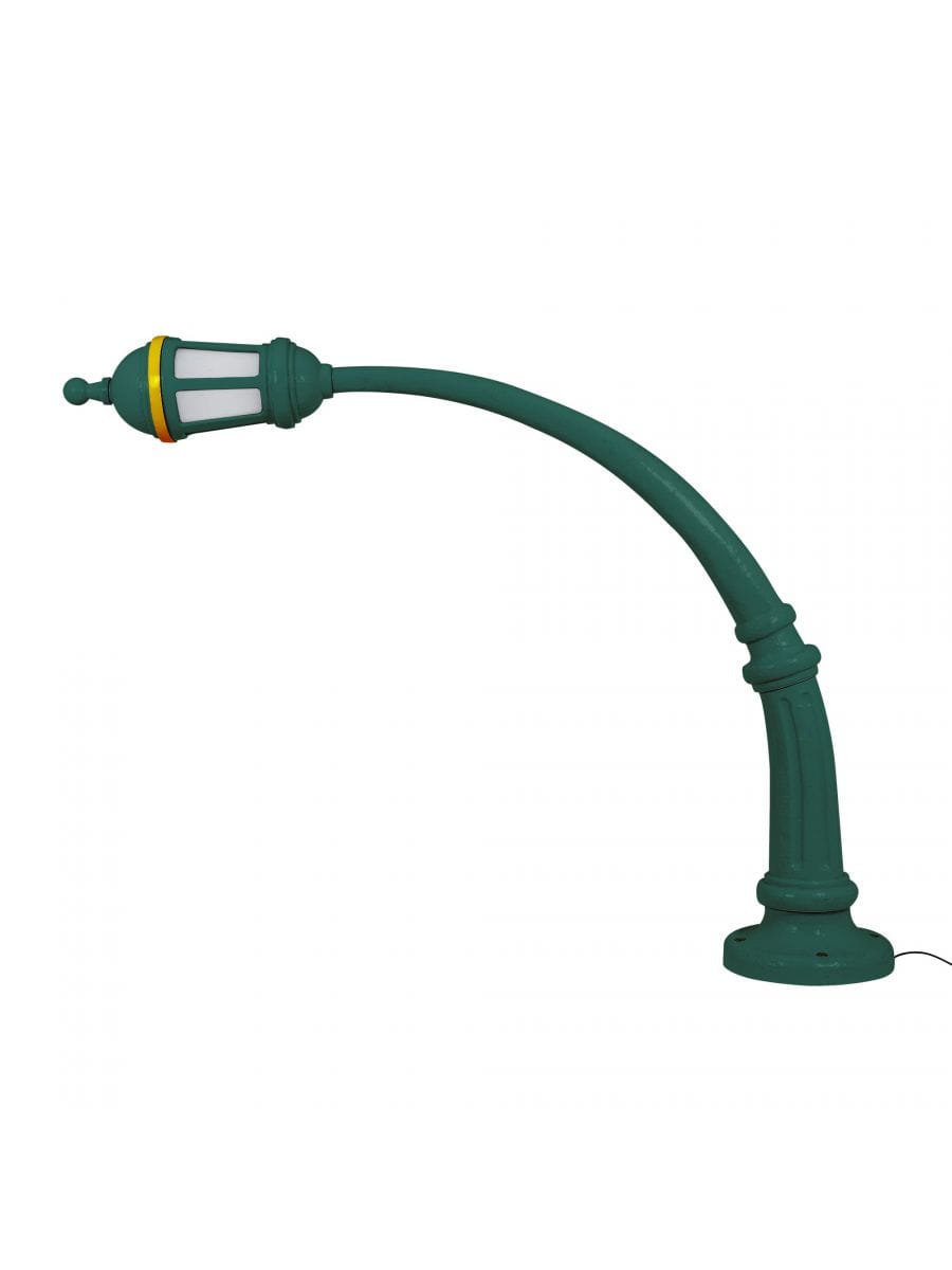 Falisty i zabawny, to ceny opisujące lampę ogrodową STREET LAMP, wyglądająca jakby, wyjęta ze starych komiksów.