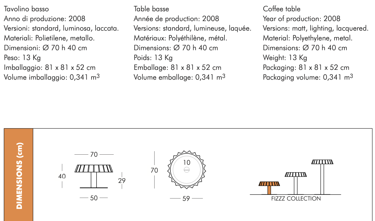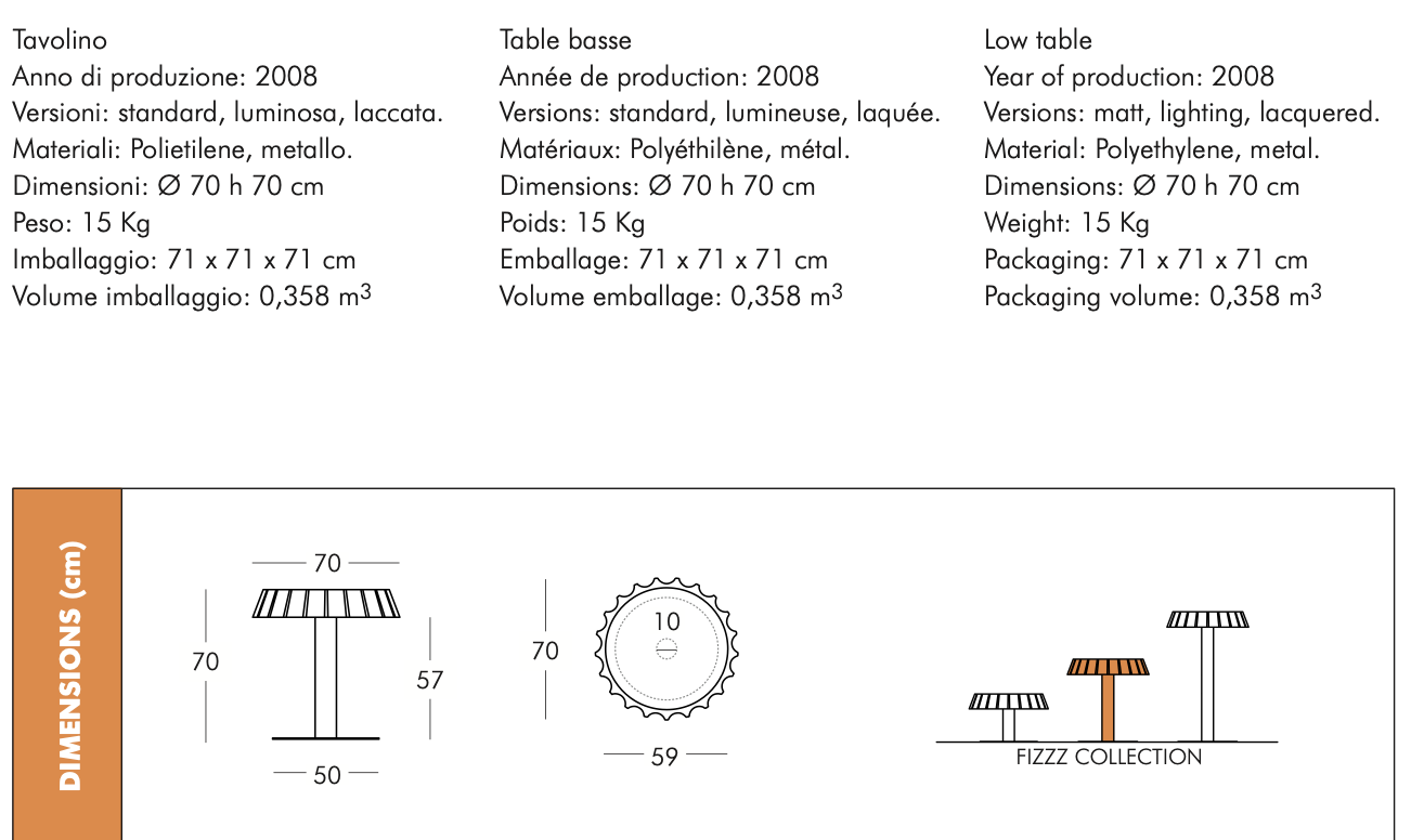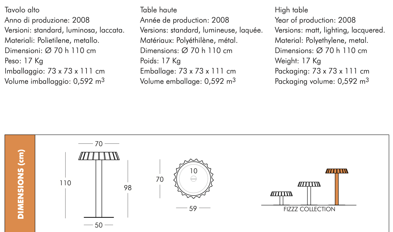 Stół ogrodowy FIZZZ występuje w różnych wymiarach i jest rezultatem niesamowitych zdolności projektanta Gianni Arnaudo do budowania