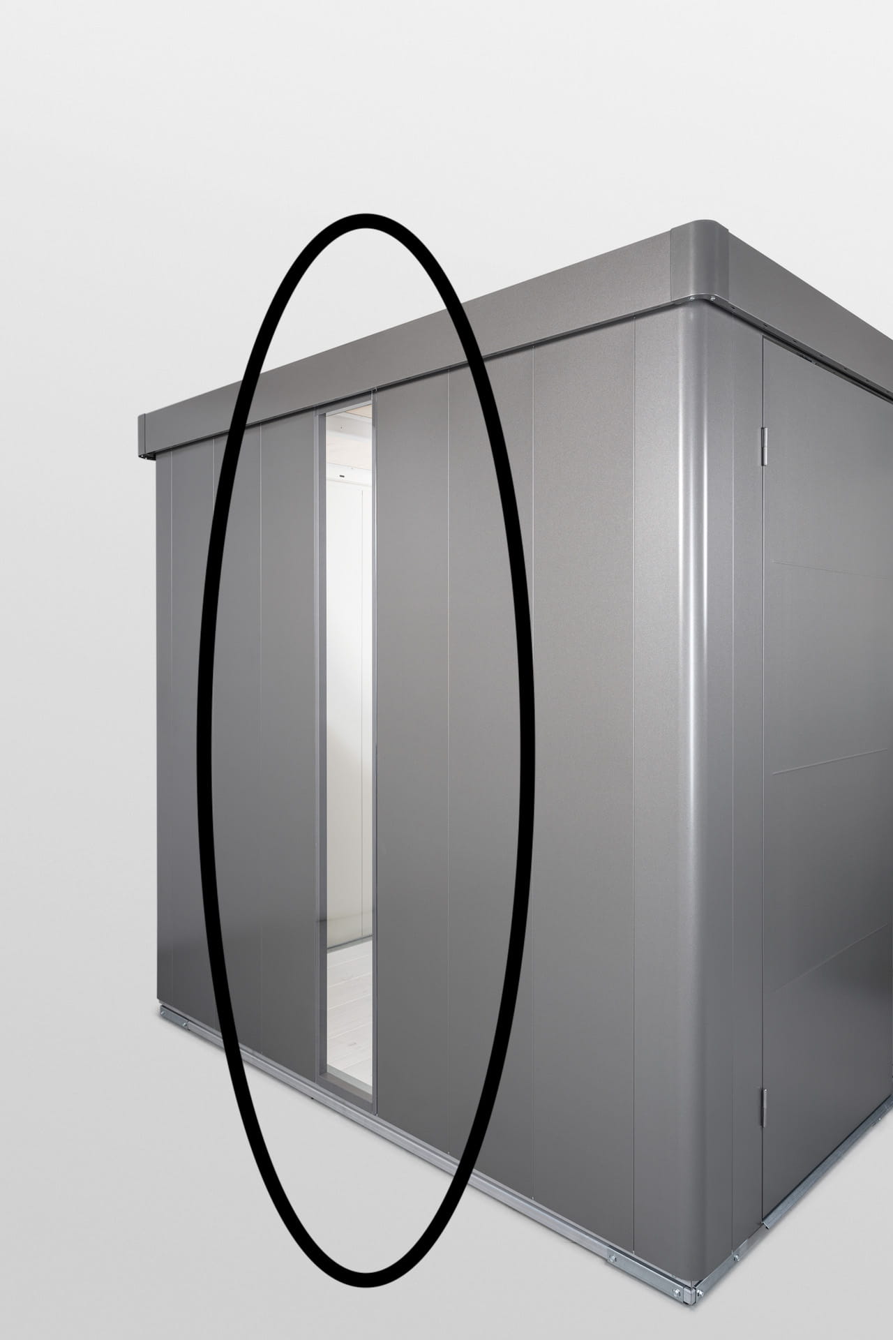 Domek ogrodowy Neo może zostać wyposażony w dodatkowy panel ze szkłem akrylowym.