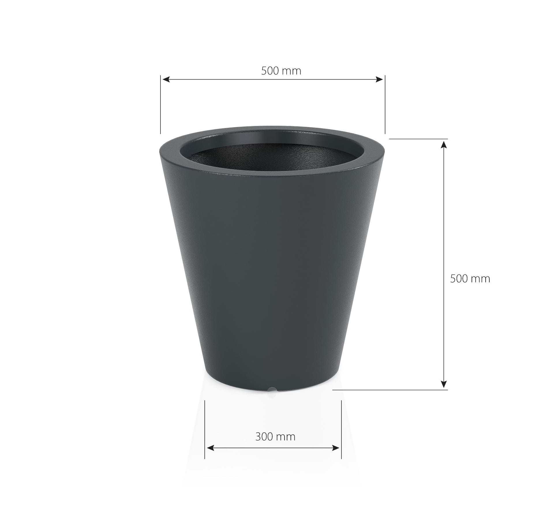 | Donica Ovo | 50 cm | 50 cm | 4 kg | 20 cm | Polietylen PE | -40°C / +60°C / UV | do wnętrz i na zewnątrz |