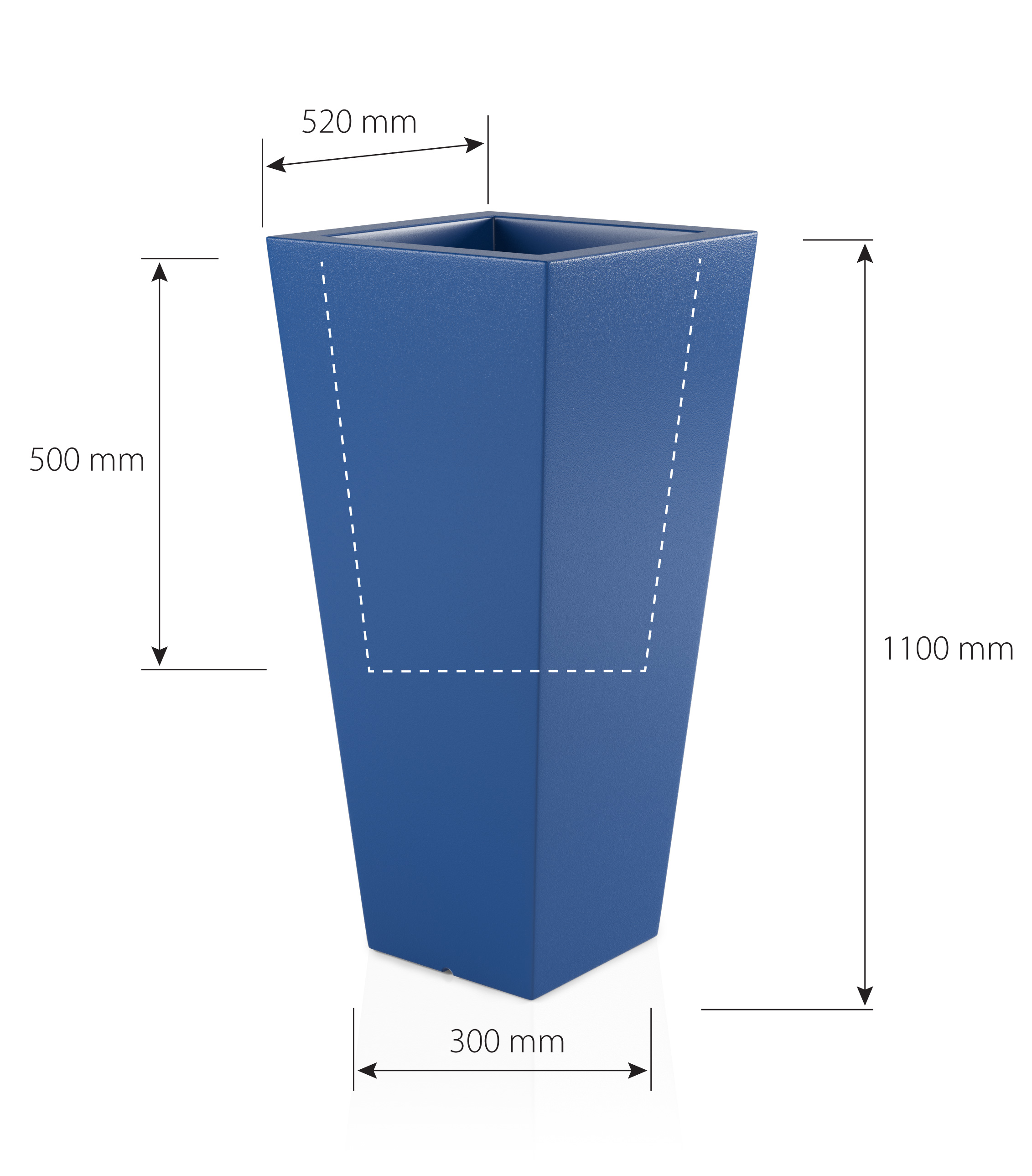 | 110 cm | 52 cm x 52 cm | 17 kg | 50 cm | Polietlen PE | -40°C / +60°C / UV | do wnętrz i na zewnątrz |