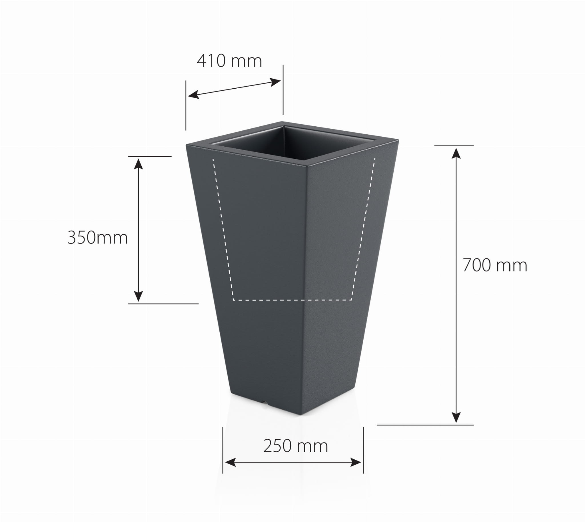 Wersja podświetlana donicy może być ozdobą każdego balkonu, tarasu czy ogrodu w 2 wersjach: