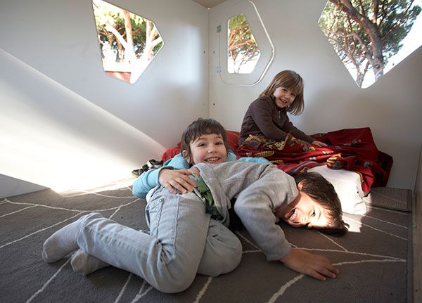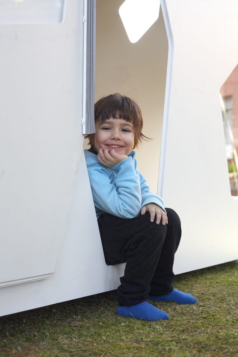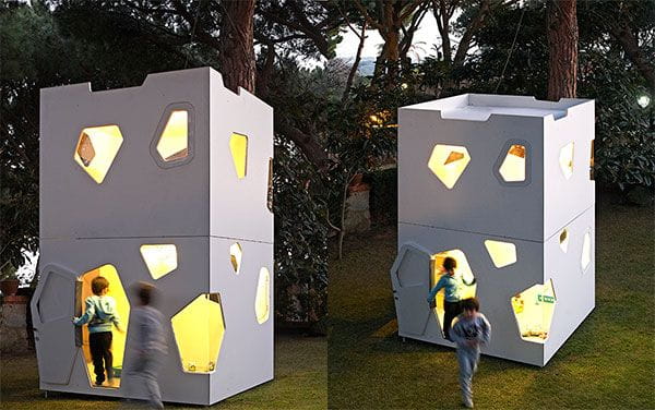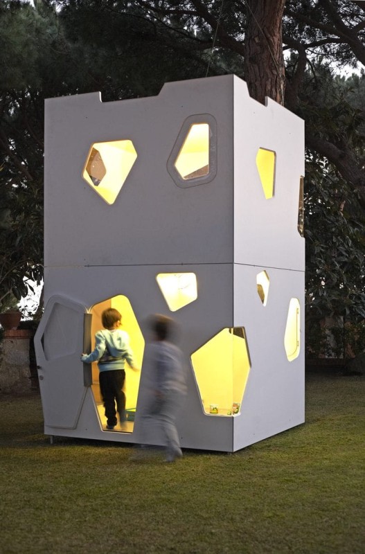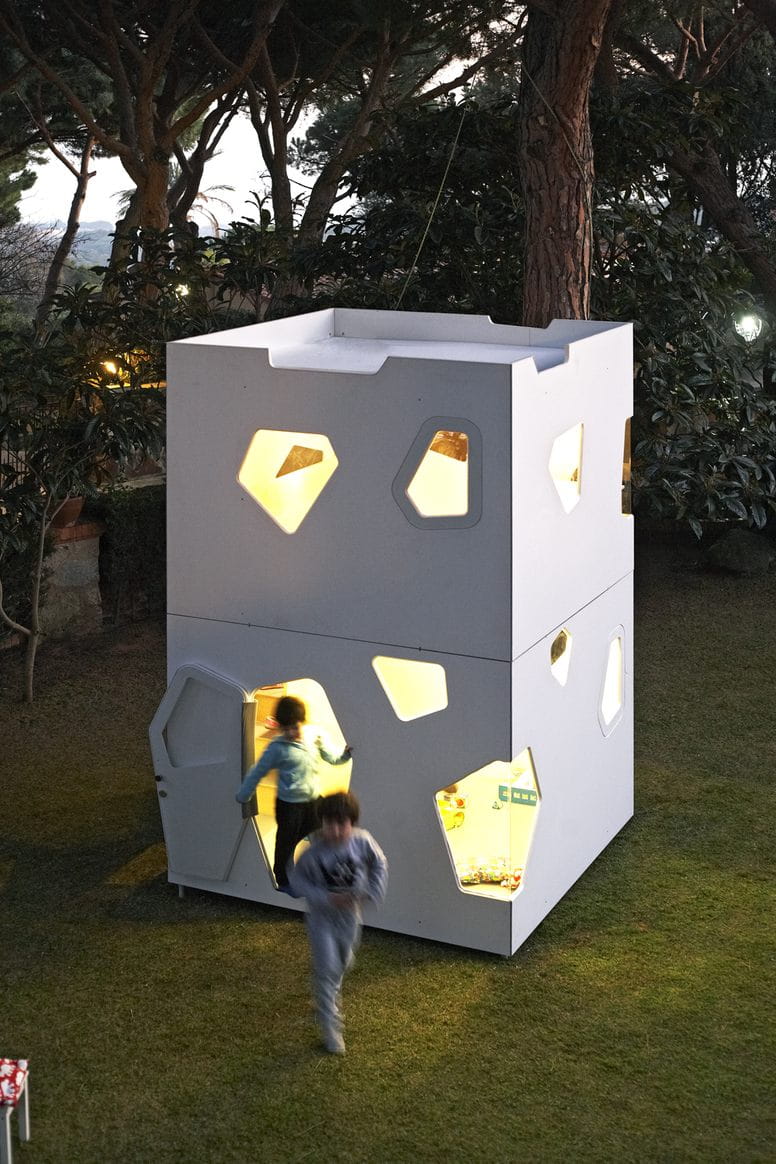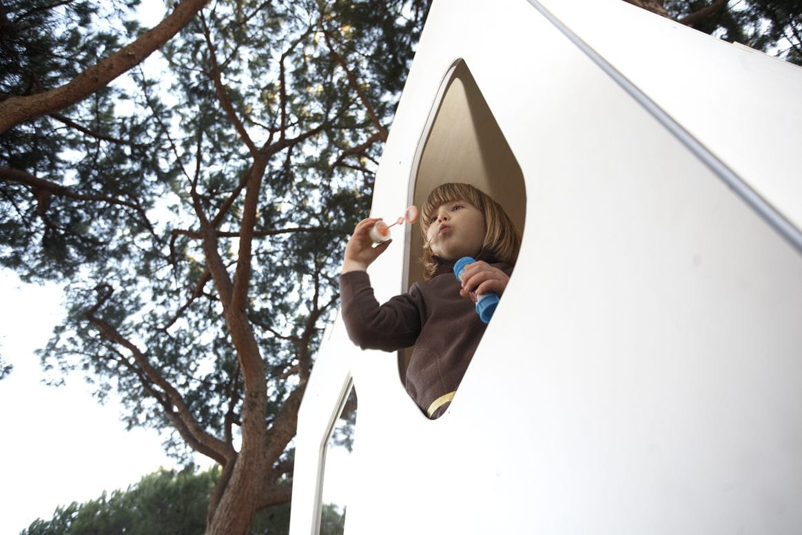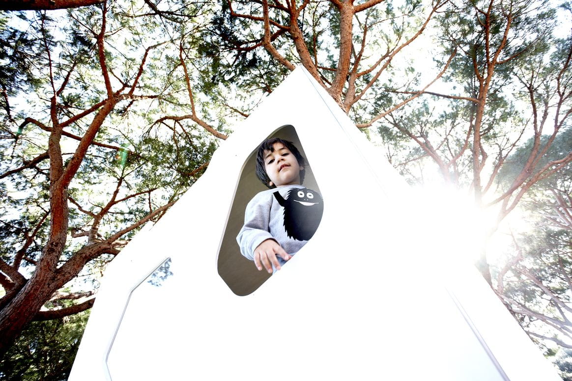Dwupiętrowy domek Kyoto Maxi jest inspirowany japońskim stylem futurystycznym, który pomaga uwolnić kreatywność i wyobraźnię dzieci.