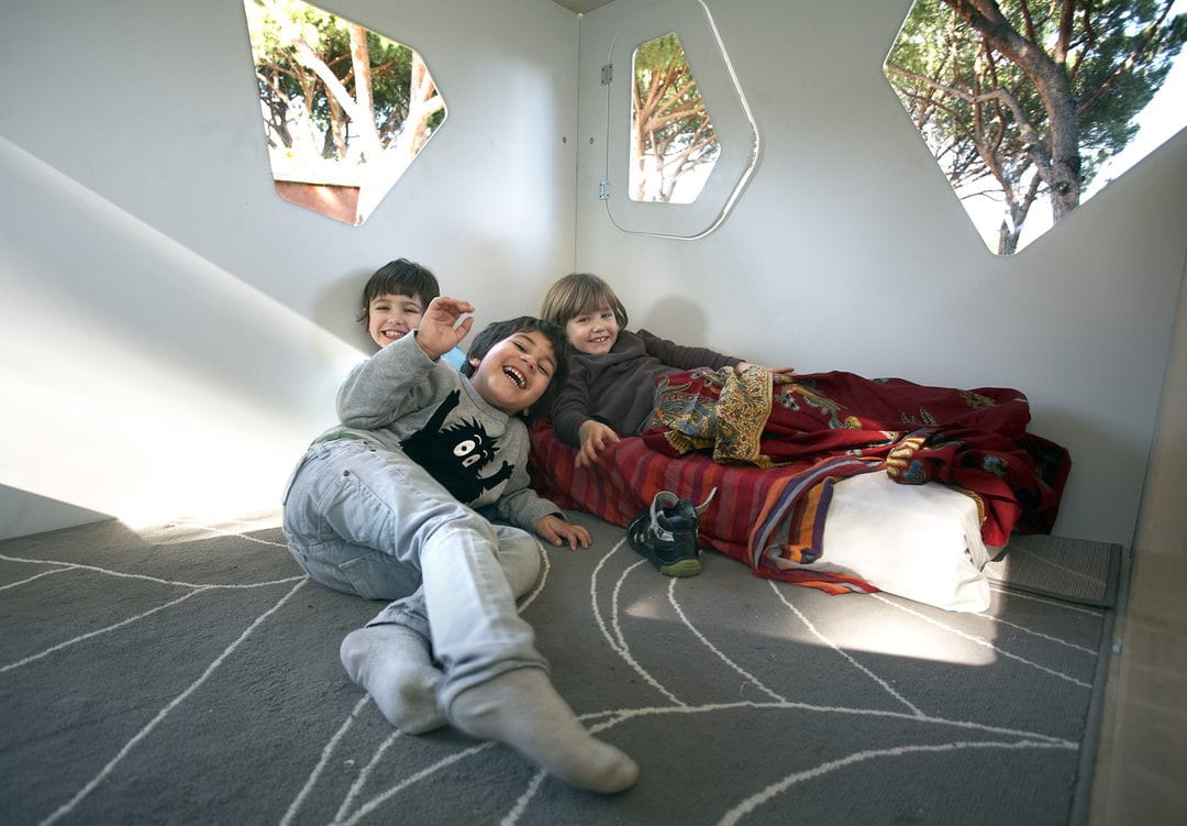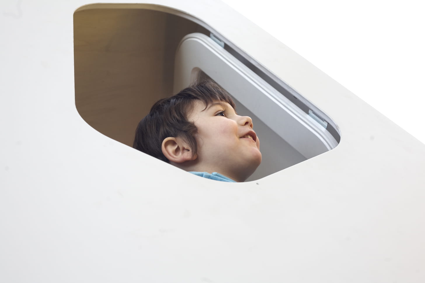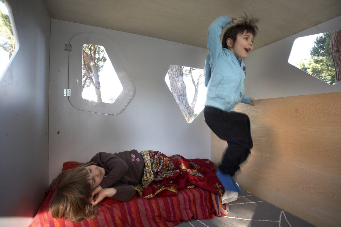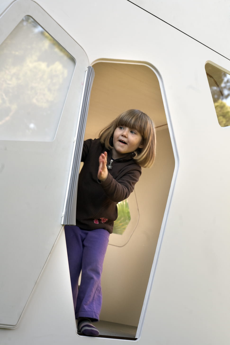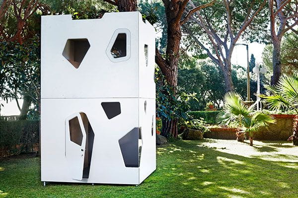 Dwupiętrowy domek Kyoto Maxi jest inspirowany japońskim stylem futurystycznym, który pomaga uwolnić kreatywność i wyobraźnię dzieci.
