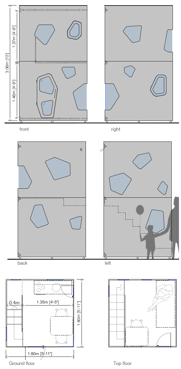Głównym materiałem tego dwupiętrowego budynku jest sklejka brzozowa - jest ona wysoce odporna, ponieważ wykonana z twardego drewna, idealna do używania w wilgotnych środowiskach.