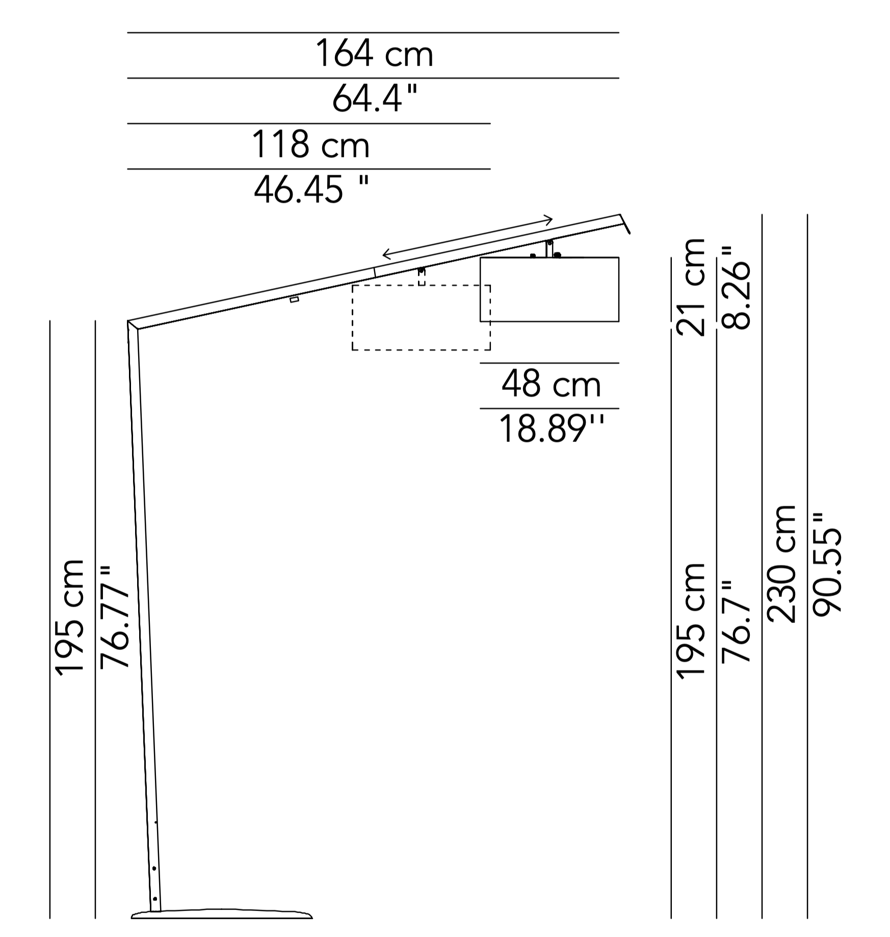 a dodatkowo sam żyrandol możemy przesuwać i dostosować jego odległość od ramienia.