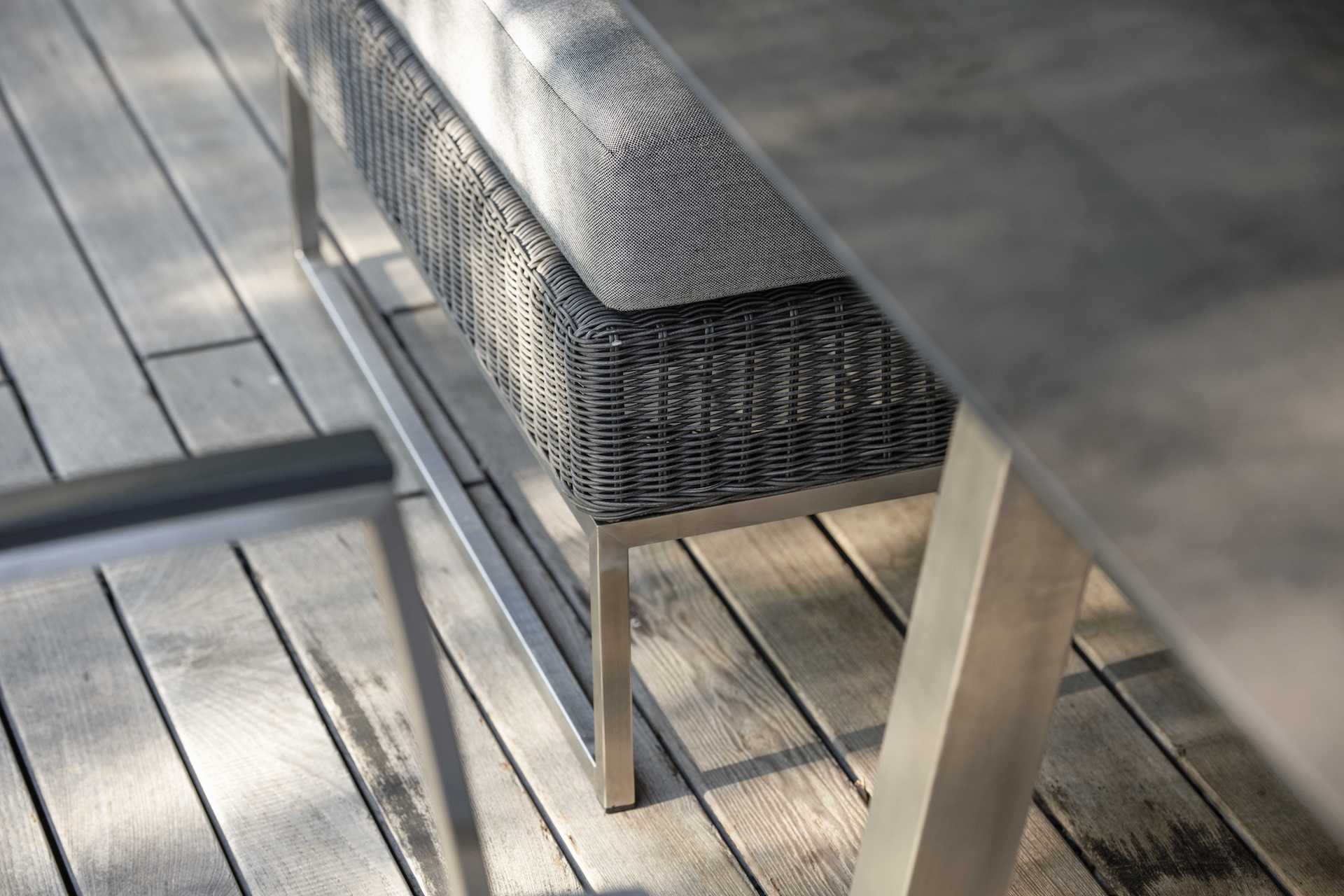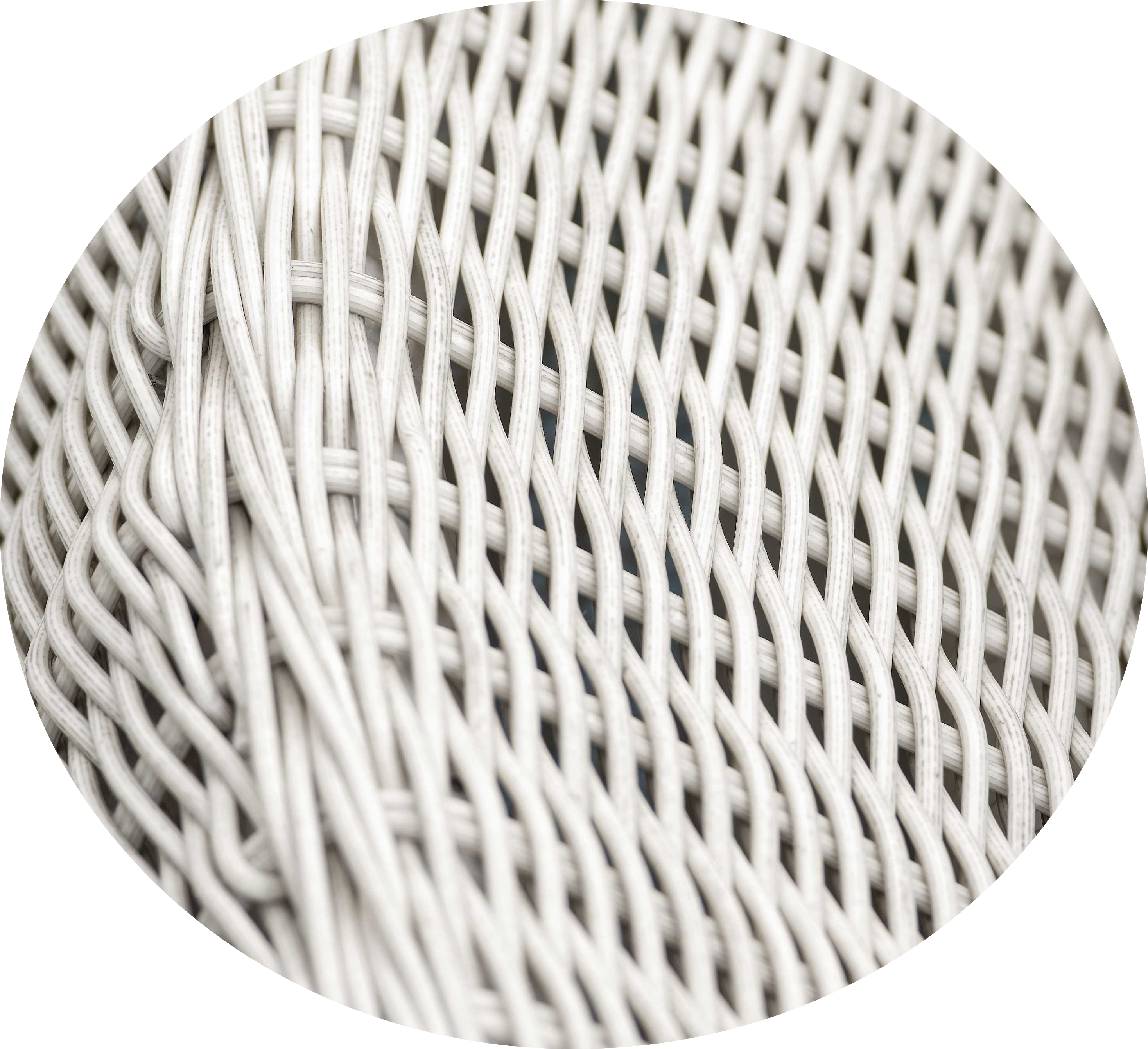 Ręczne oplatanie na solidnych, malowanych proszkowo aluminiowych ramach sprawia, że te meble ogrodowe są trwałe i unikalne.