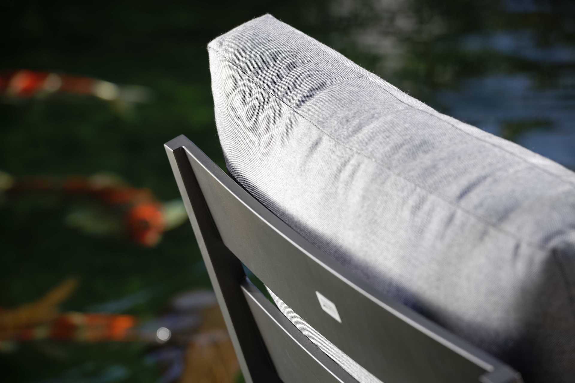 Materiał na poduszkach outdoor 100% poliakryl w kolorze "silk grey".