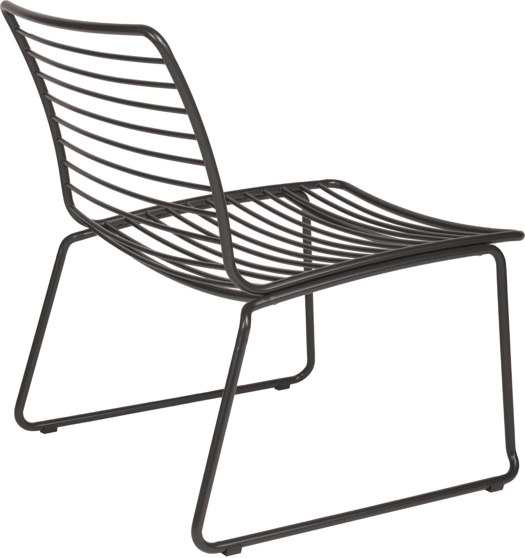 Powierzchnia siedziska i oparcia składa się z poziomych prętów ze stali nierdzewnej, które nadają fotelowi purystyczny i lekki wygląd.