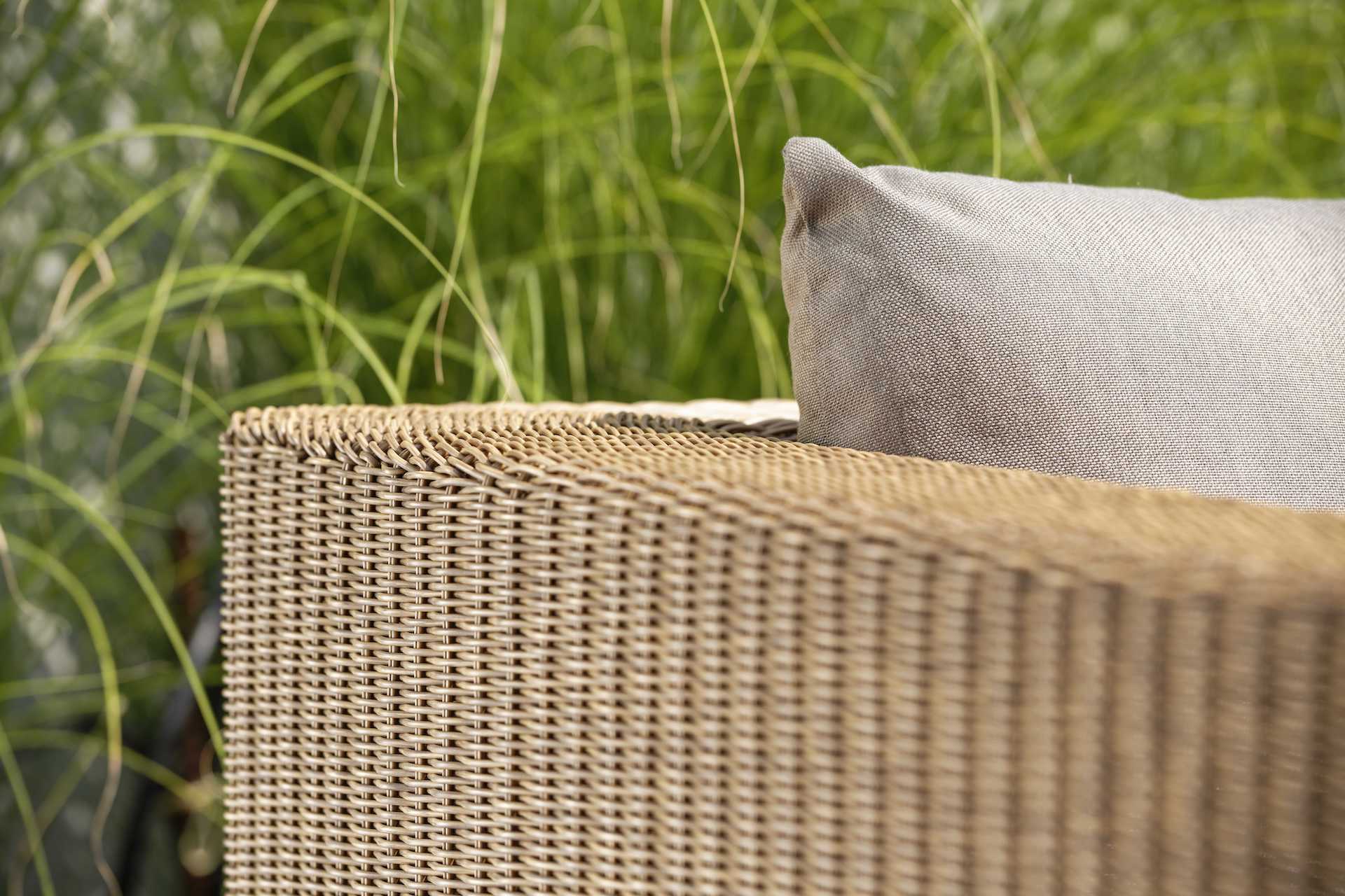 Ręczne oplatanie na solidnych, malowanych proszkowo aluminiowych ramach sprawia, że te meble ogrodowe są trwałe i unikalne.