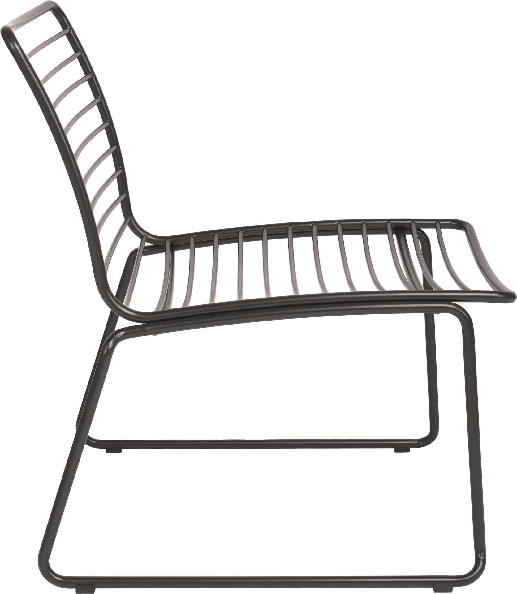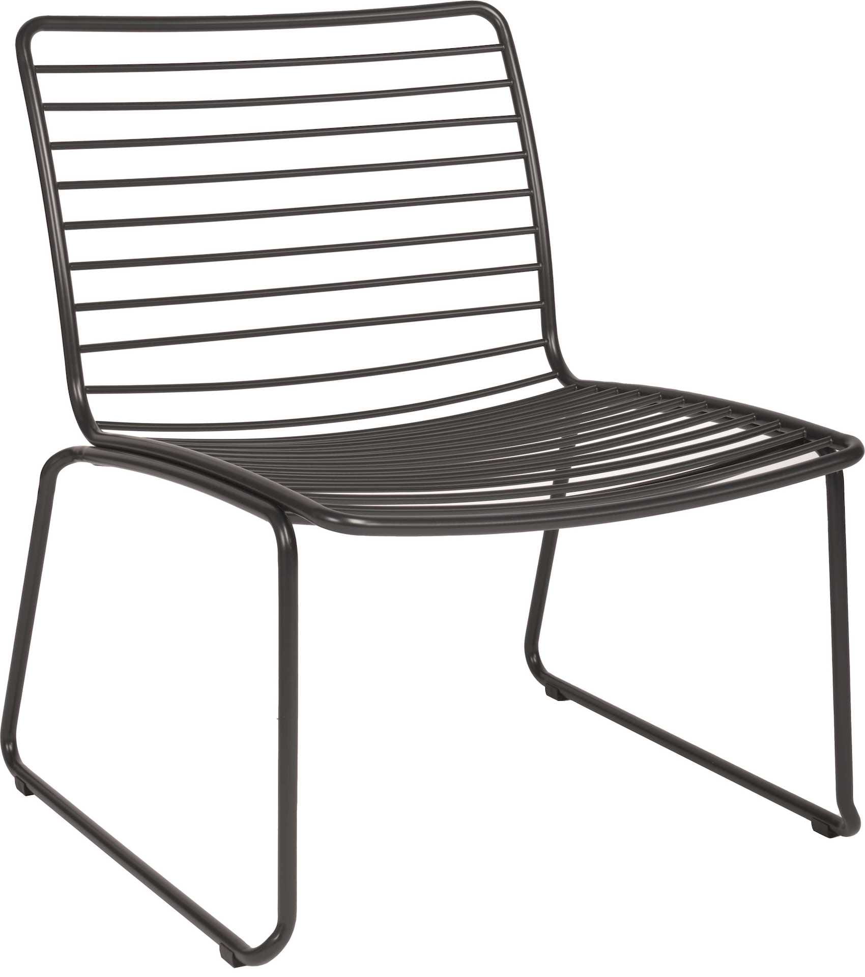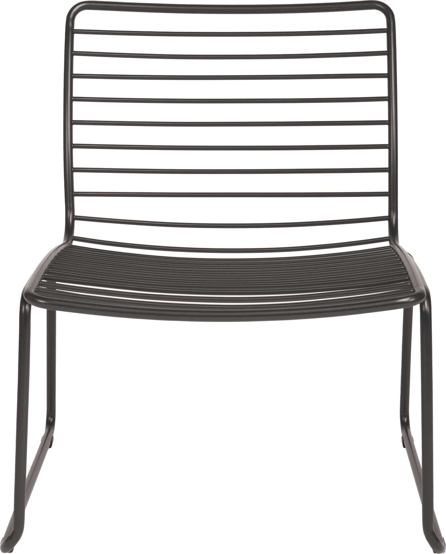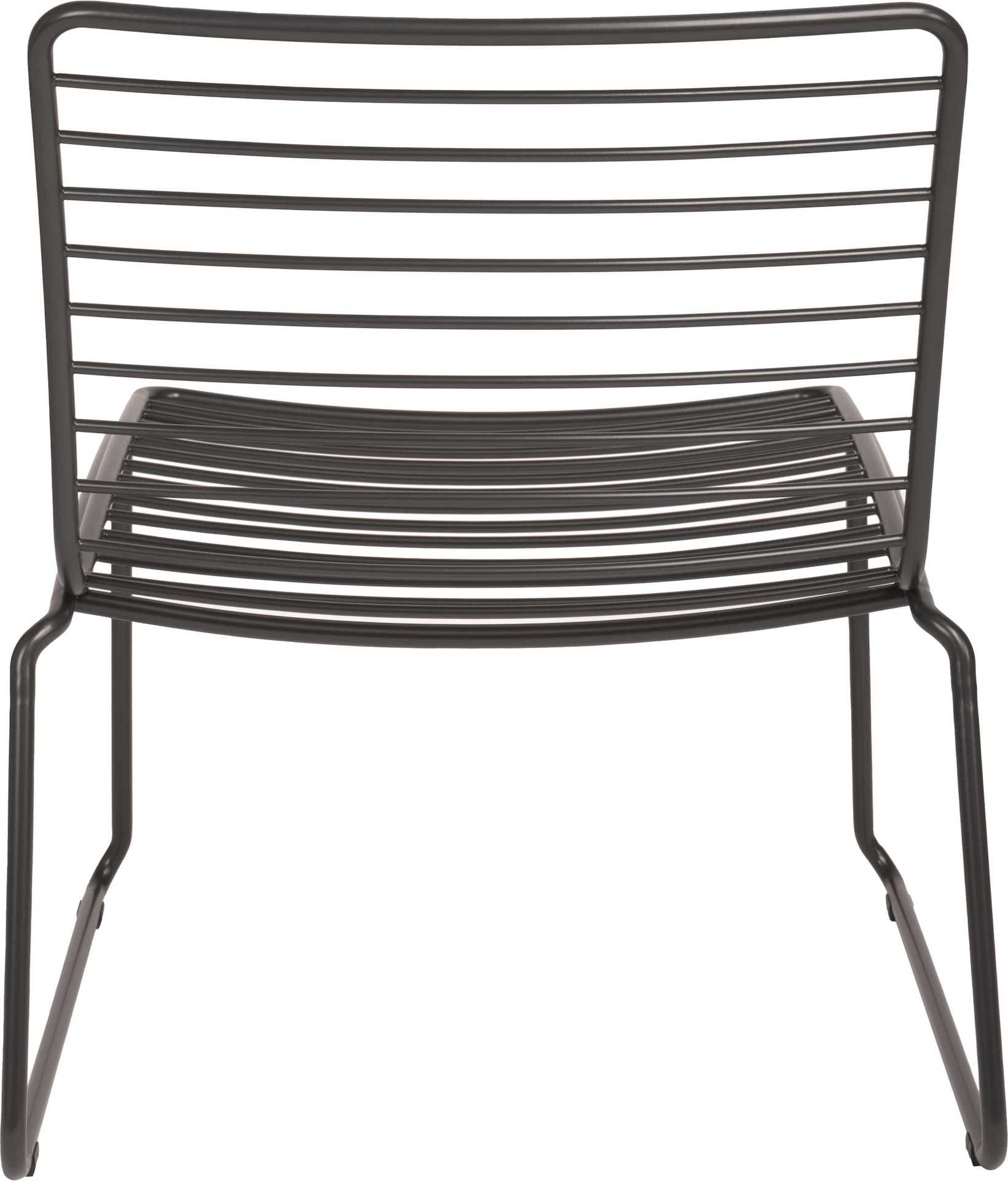 Powierzchnia siedziska i oparcia składa się z poziomych prętów ze stali nierdzewnej, które nadają fotelowi purystyczny i lekki wygląd.