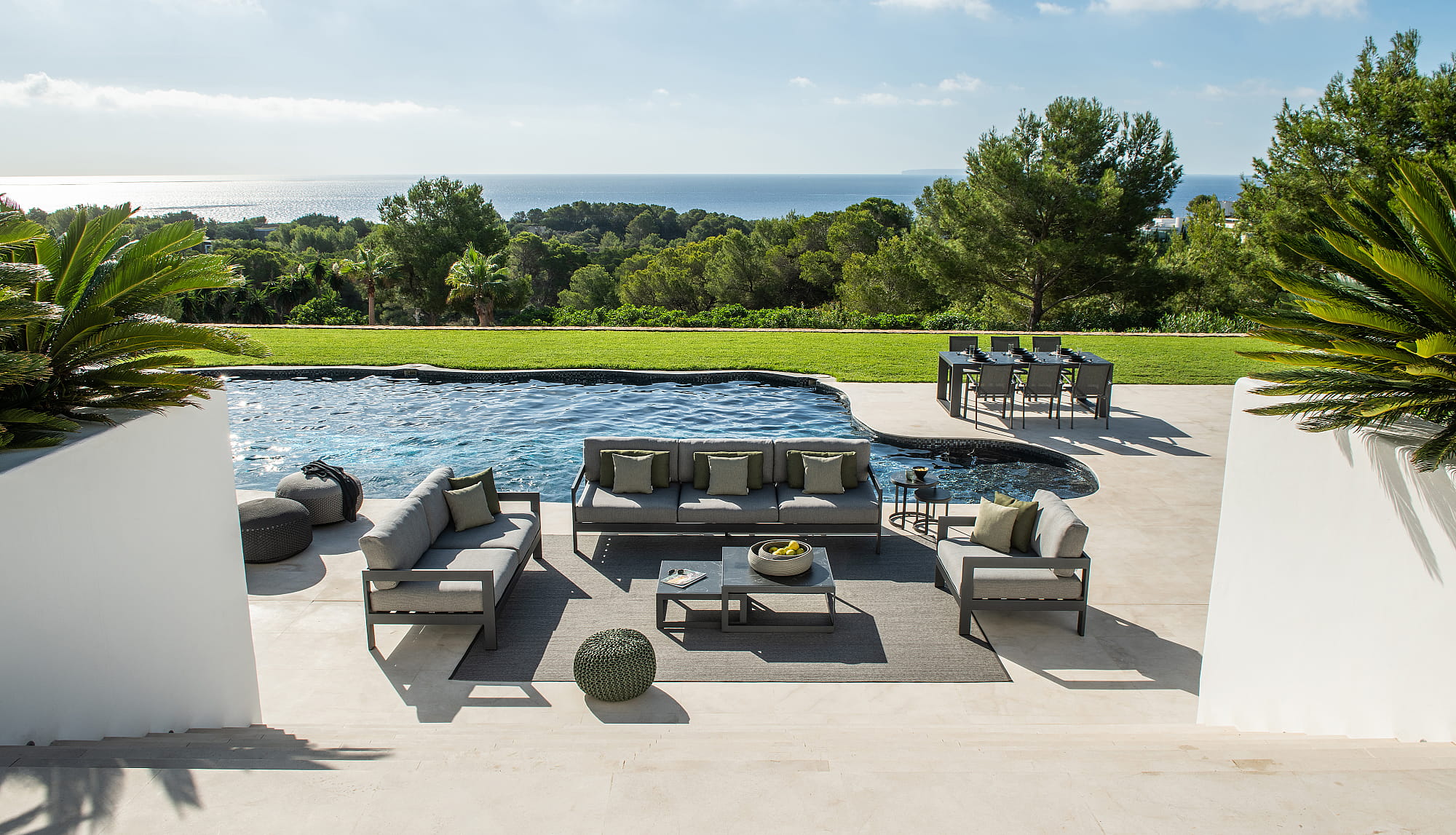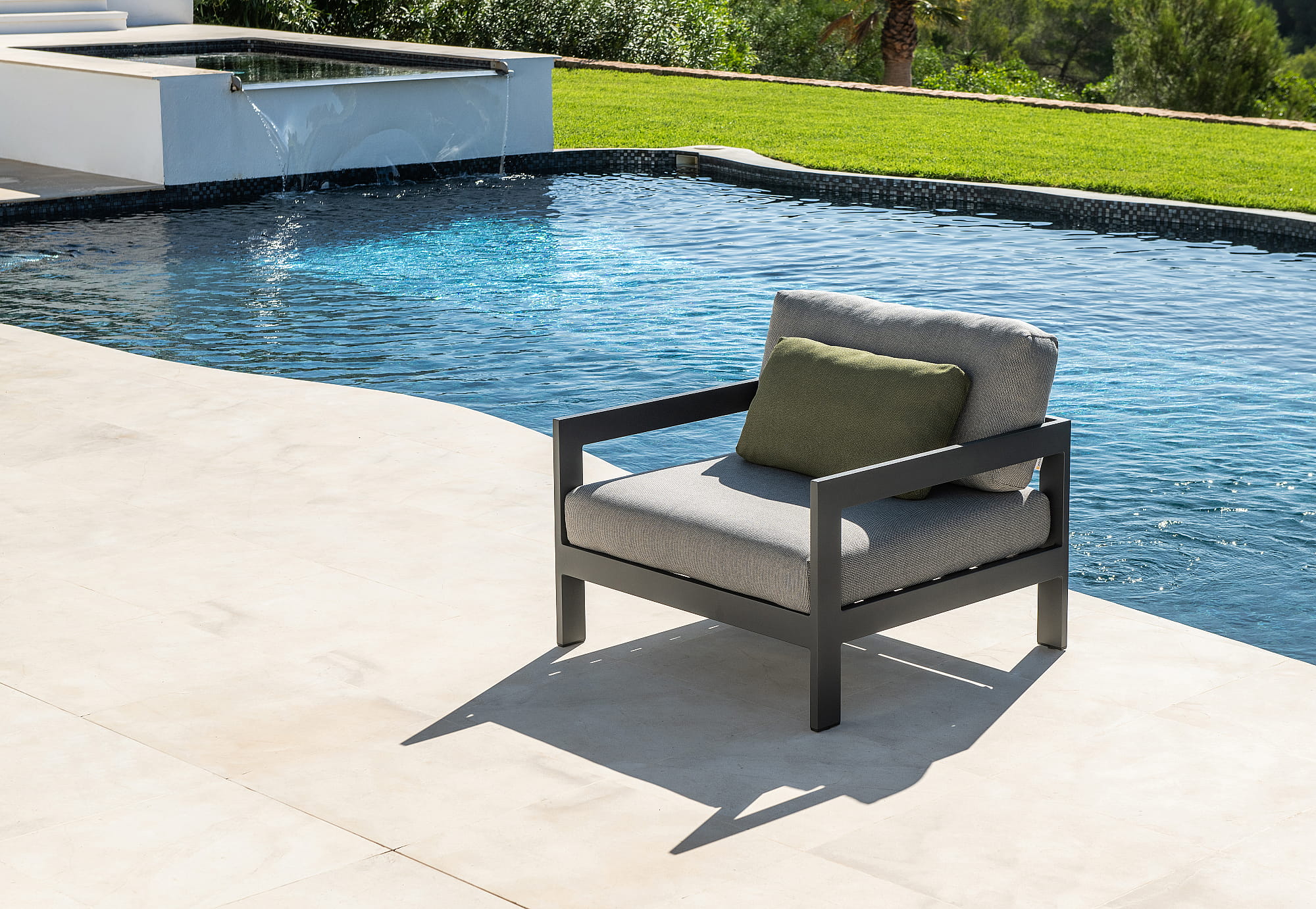 Kolekcja balansuje na granicy klasyki i nowoczesności. Poduszki wykonane z wysokiej jakości tkaniny Sunbrella lub Exteria i wypełnione pianką na każdą pogodę, ani słońce, ani deszcz nie będą miały wpływu na komfort użytkowania.