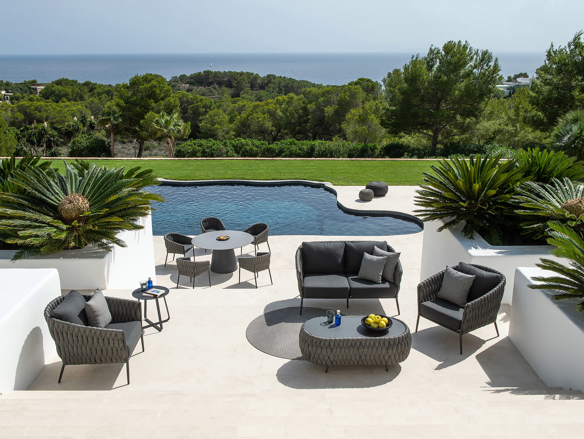 Mętna lina o splocie krzyżowym nadaje zestawowi nie tylko oryginalny wygląd, ale także niezrównane wrażenia podczas siedzenia.