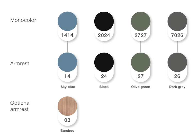 Podłokietniki: aluminium lub nakładki bambusowe