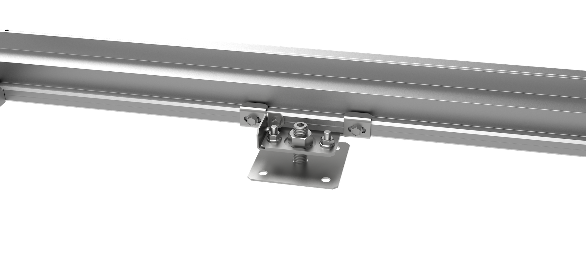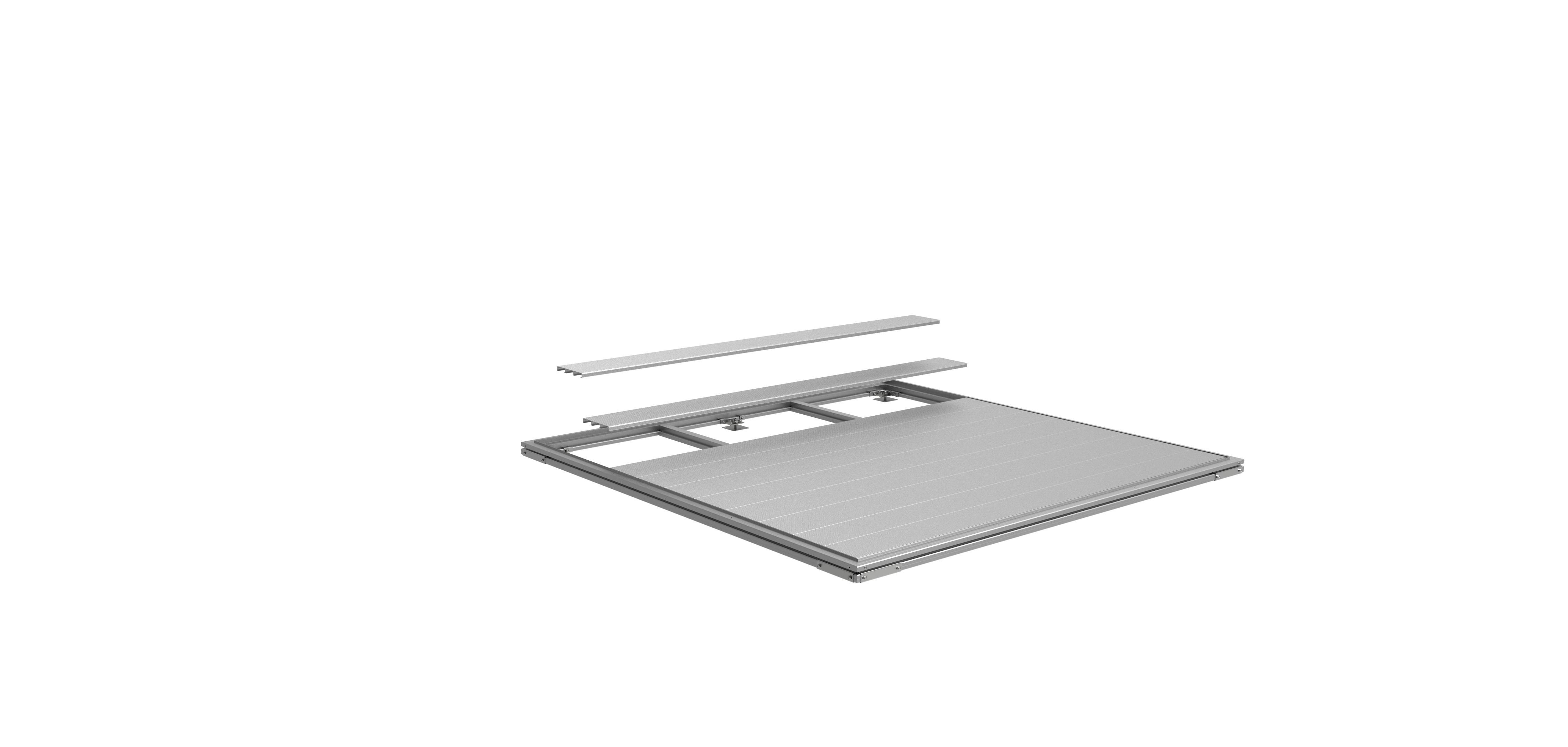 W skład zestawu wchodzi wysokiej jakości podłoga aluminiowa z blachy ryflowanej o grubości 2 mm, specjalna rama fundamentowa oraz nóżki z regulacją wysokości.