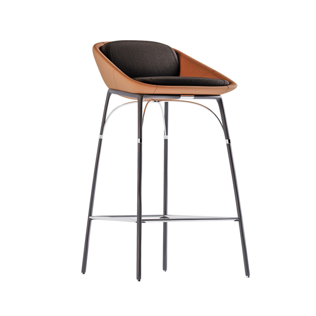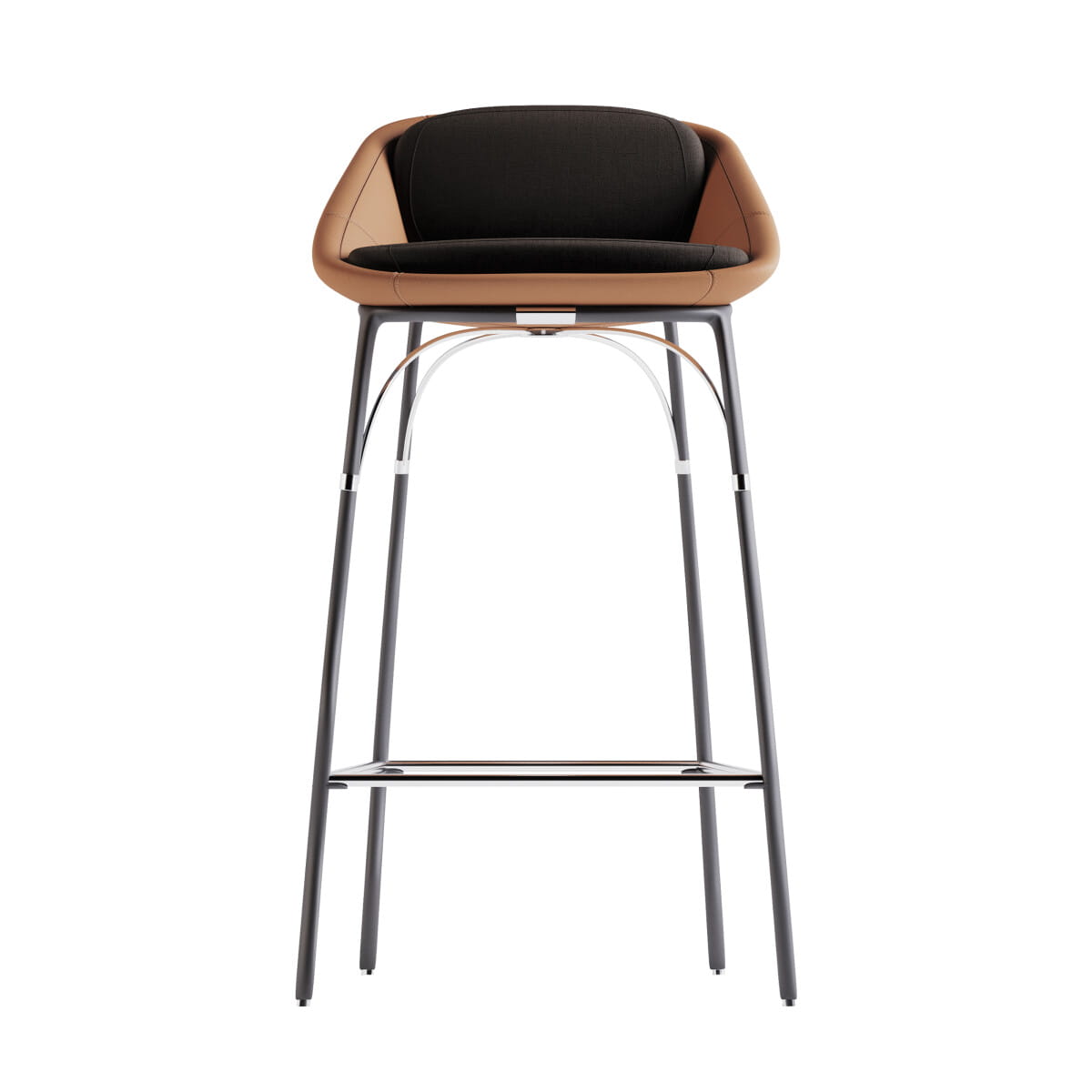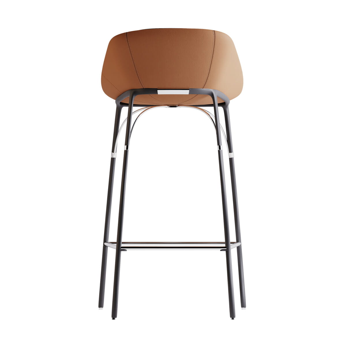 Hoker barowy ogrodowy ma smukłe, eleganckie nogi ze stali lakierowanej na czarny mat z metalowymi detalami i dobrze wyprofilowane siedzisko.