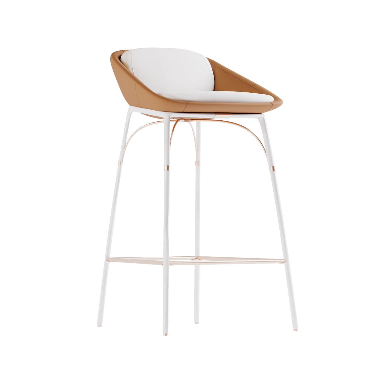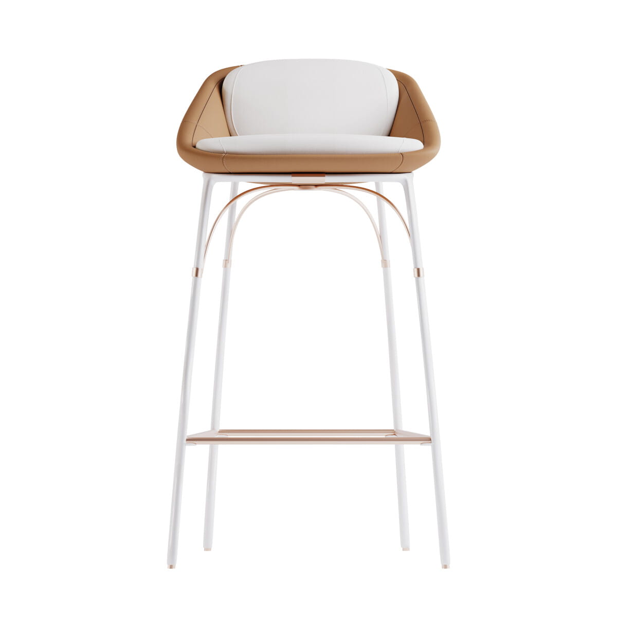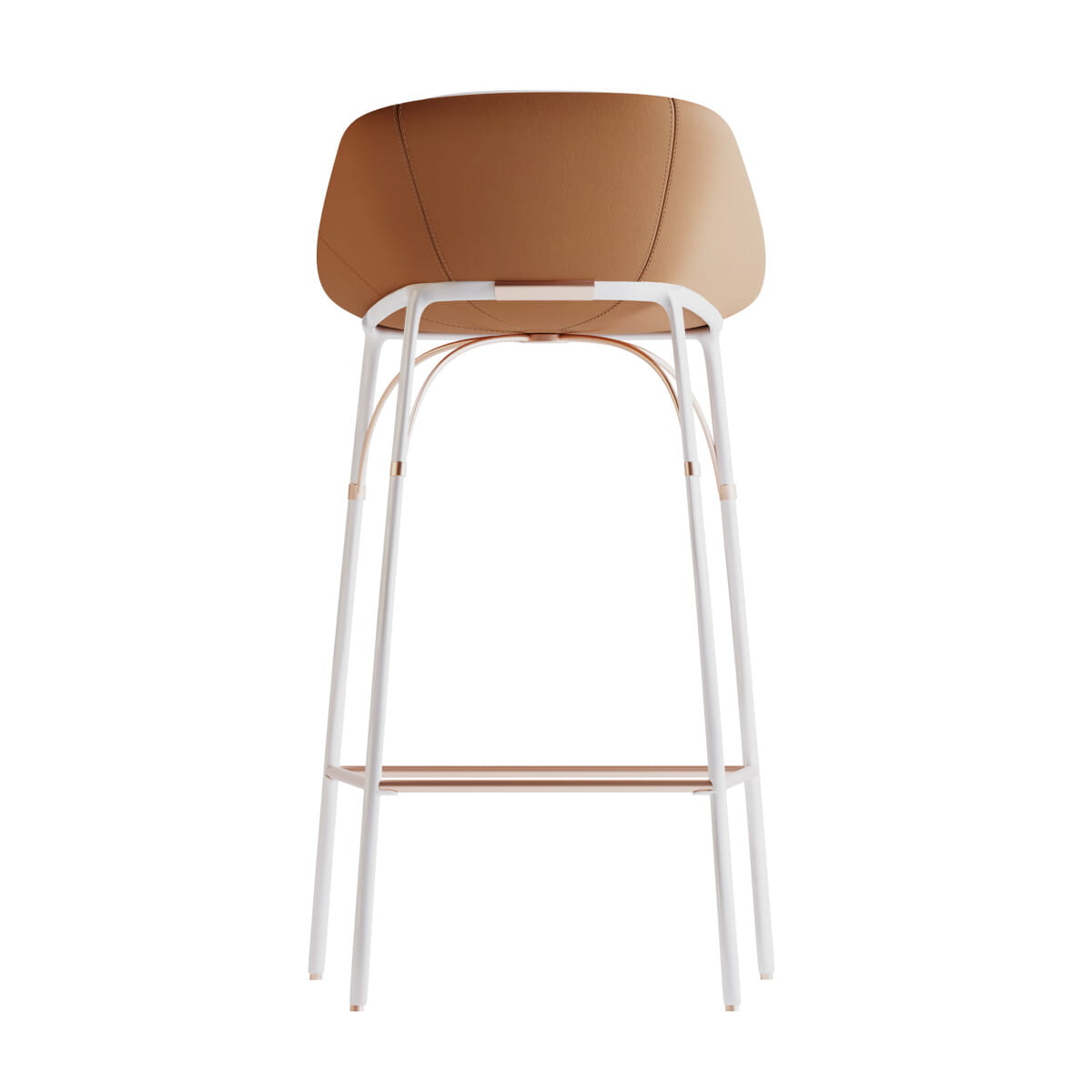 Hoker barowy ogrodowy ma smukłe, eleganckie nogi ze stali lakierowanej na czarny mat z metalowymi detalami i dobrze wyprofilowane siedzisko.