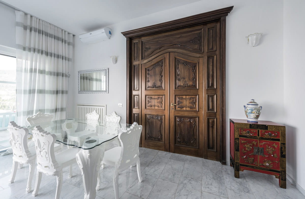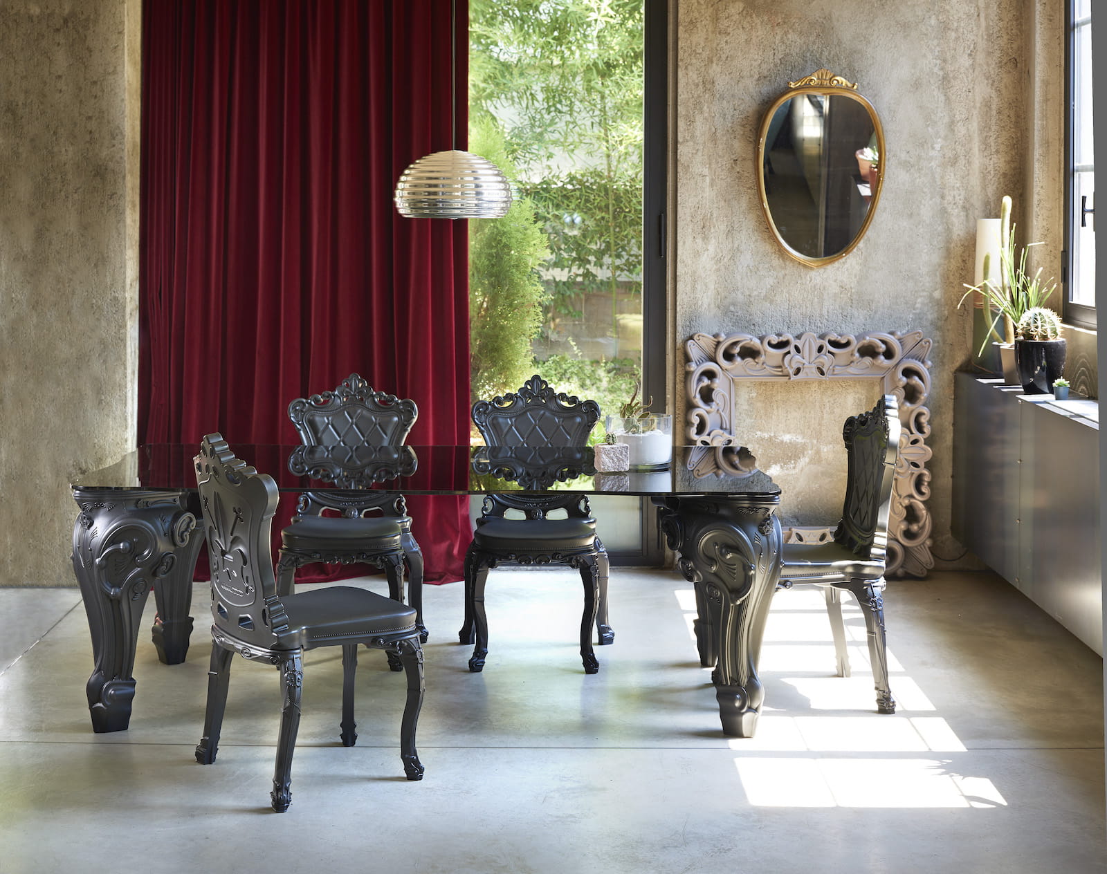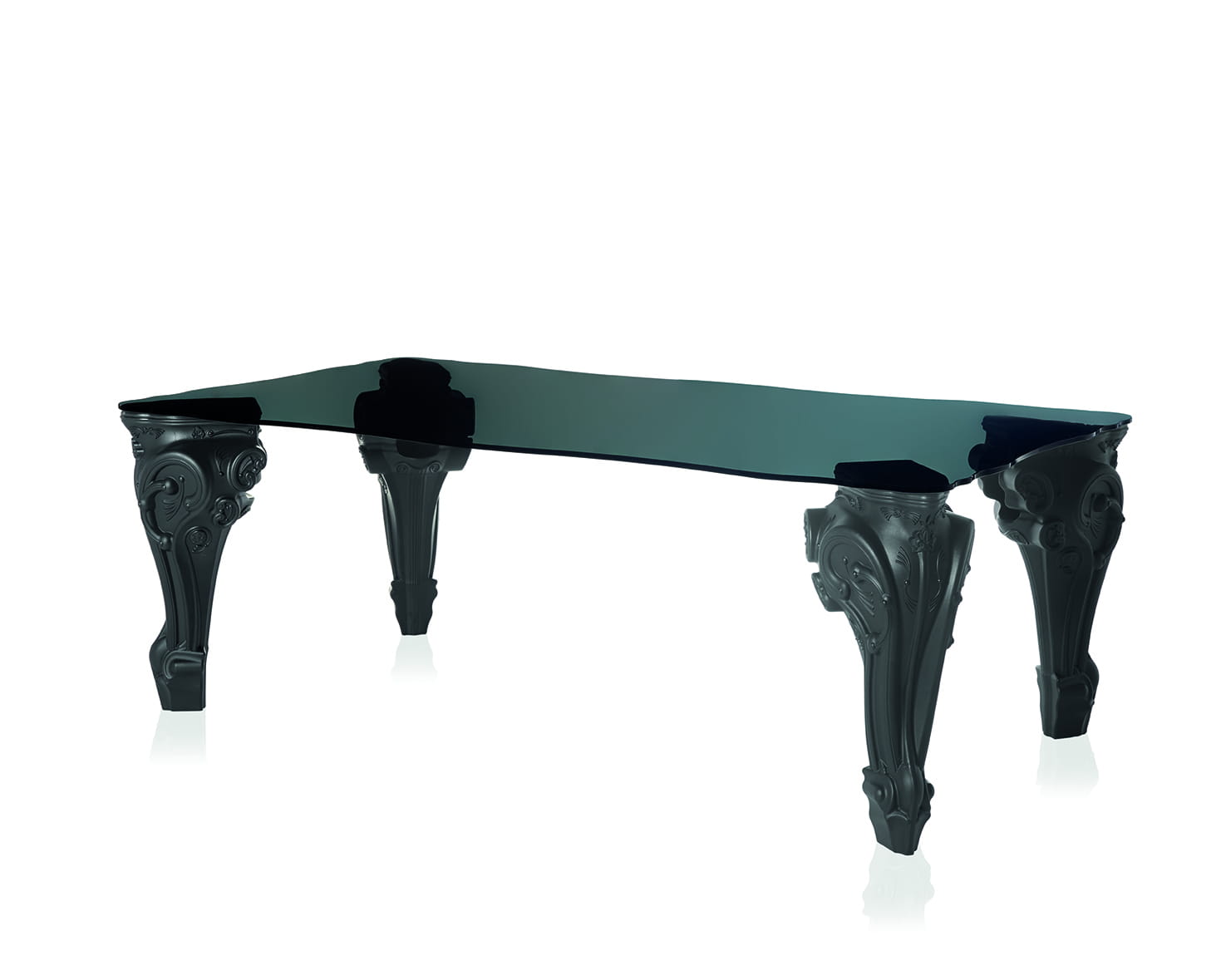 To stół oparty na bogato zdobionych nogach z polietylenu z mnóstwem niezwykłych detali, w barokowym stylu.