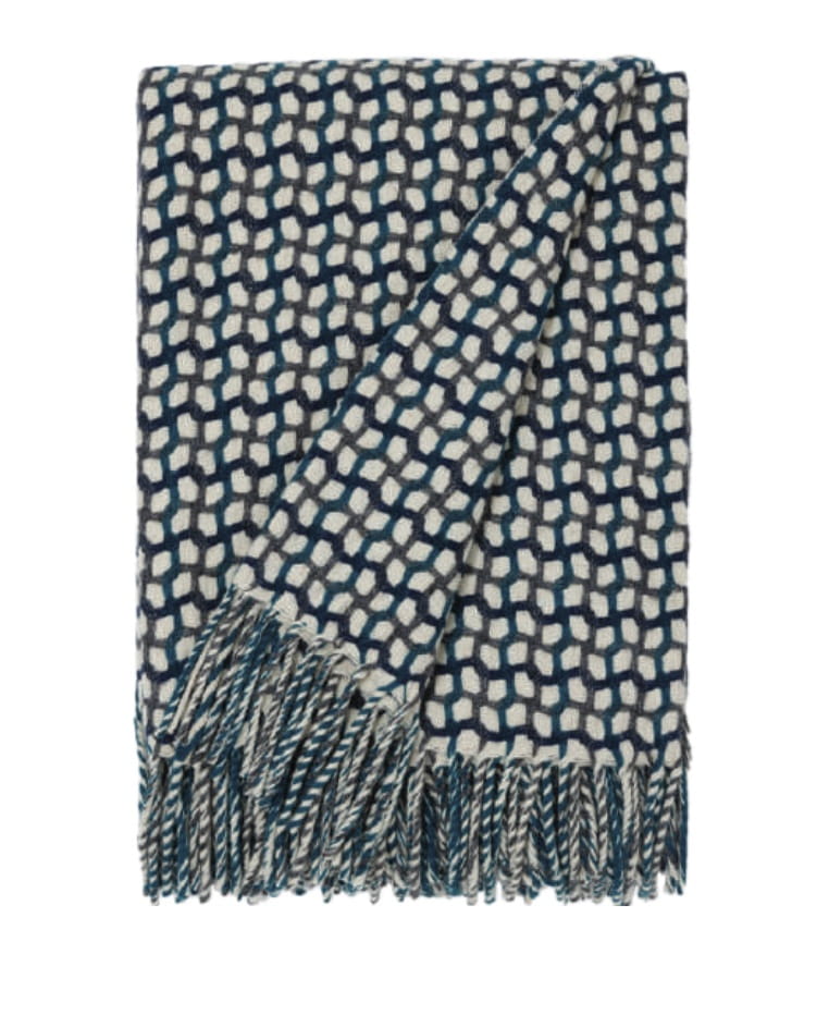 Ogrodowy koc HIVE na zewnątrz dostępny jest w dwóch rozmiarach i wykonany w sposób zrównoważony i ze 100% wełny owczej.