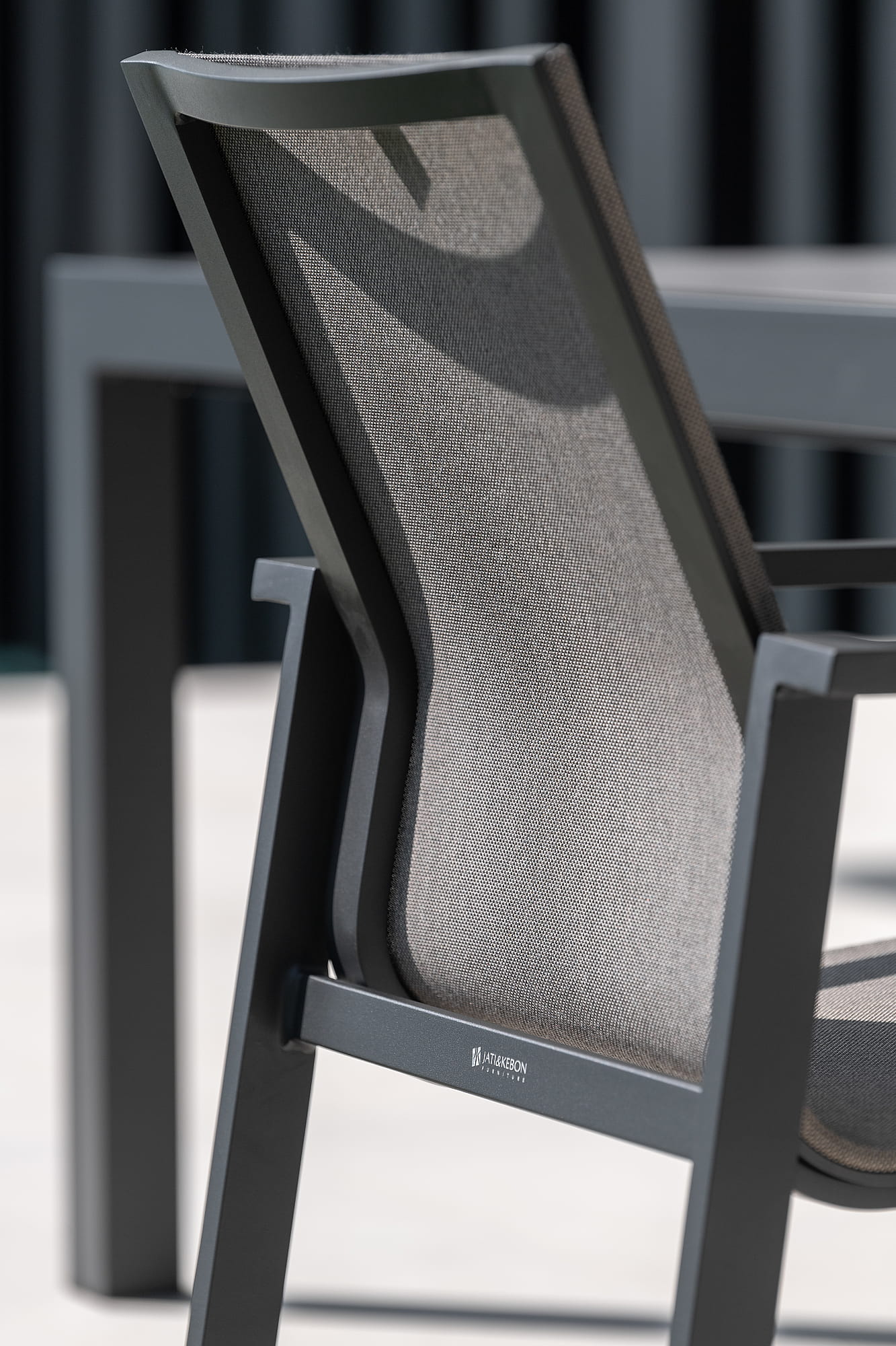 Kolekcja aluminiowych krzeseł ogrodowych obiadowych stworzona specjalnie do użytku na zewnątrz.