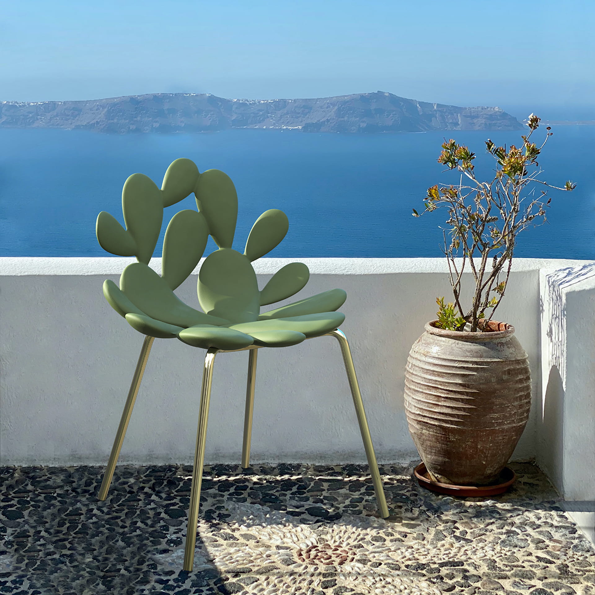 Krzesło Filicudi jest inspirowane opuncją - kultową rośliną śródziemnomorską, podobnie jak fotel czy hoker tej samej serii.
