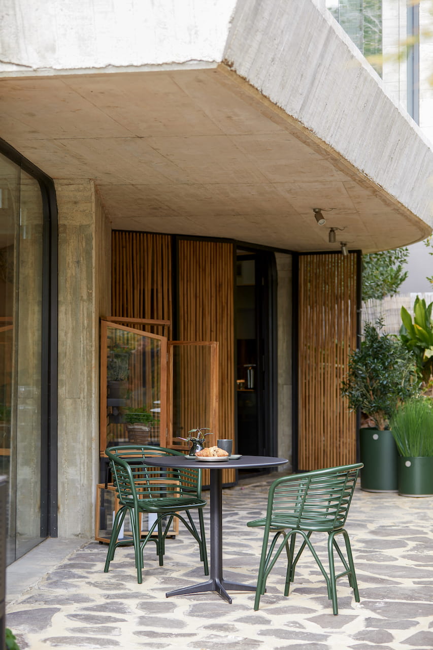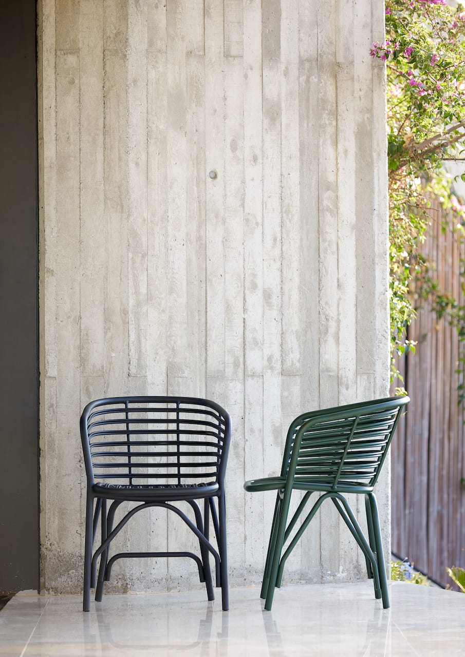 Krzesło ogrodowe Blend to eleganckie i wygodne krzesło zaprojektowane przez duet Foersom & Hiort-Lorenzen MDD.