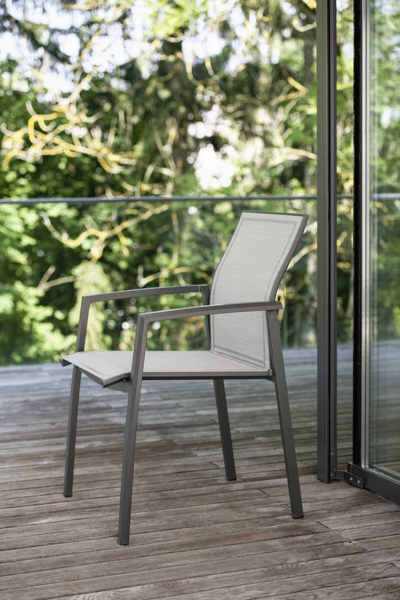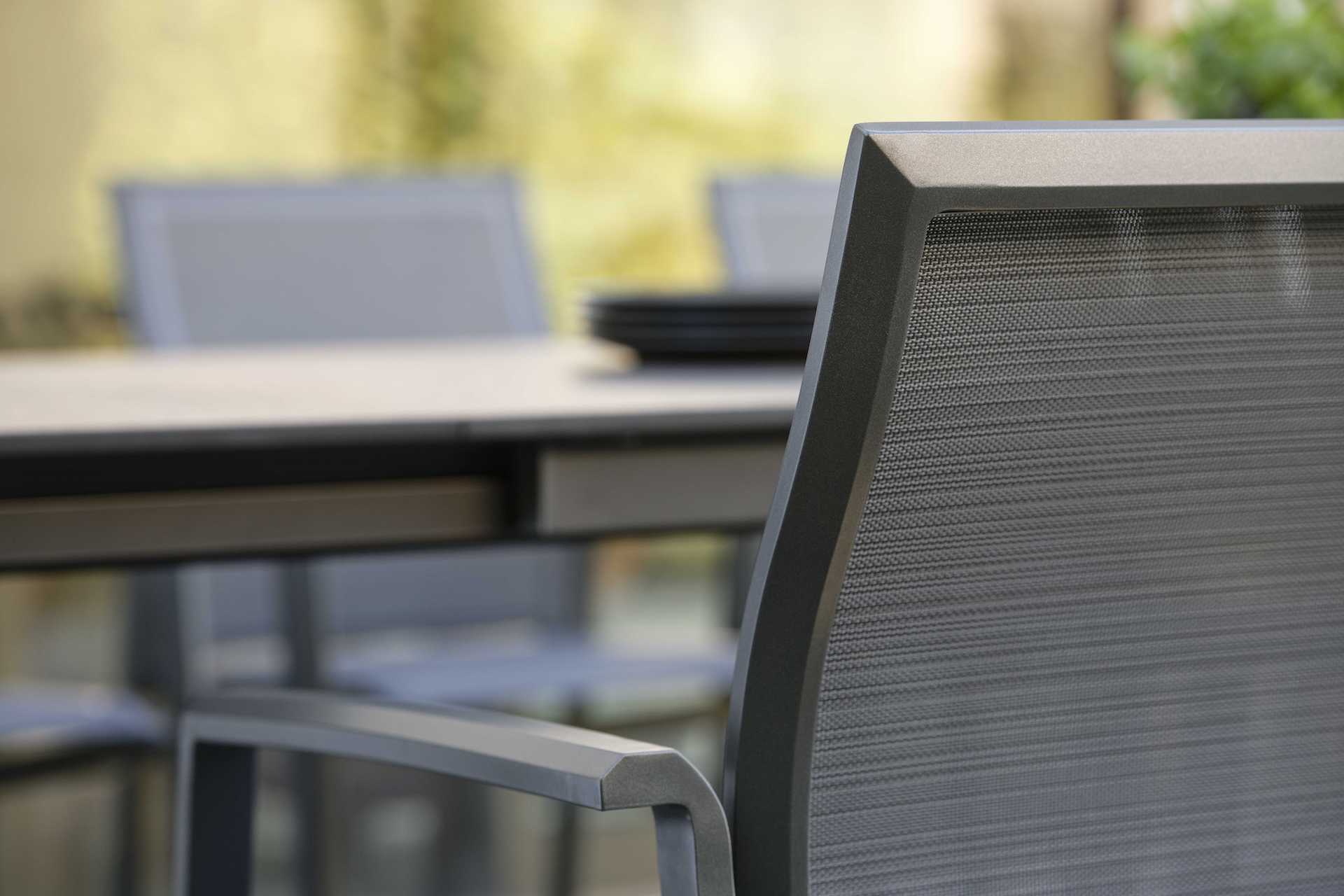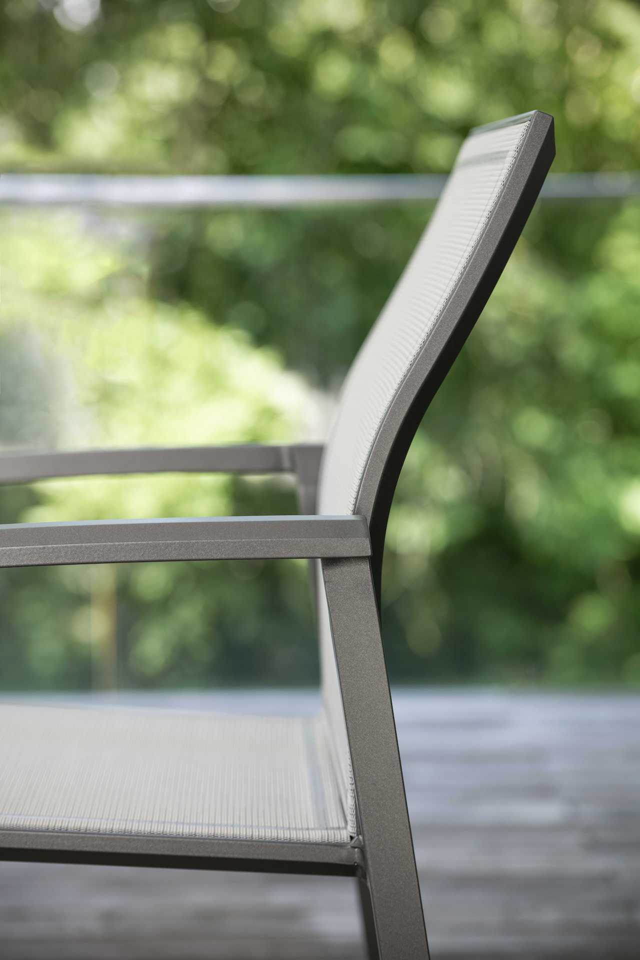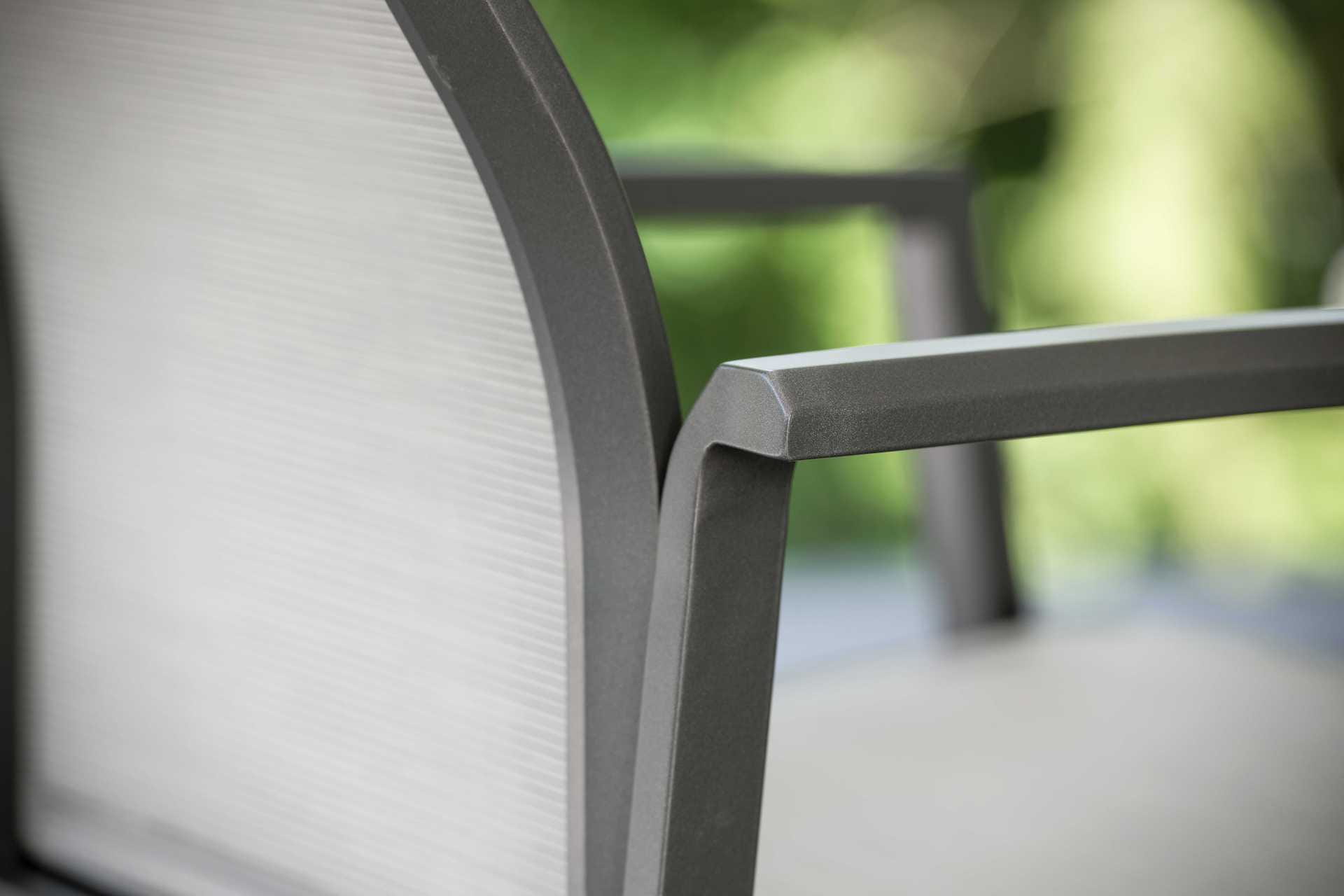 KARI to seria krzeseł i foteli ogrodowych o lekkiej, aluminiowej konstrukcji i siedziskiem