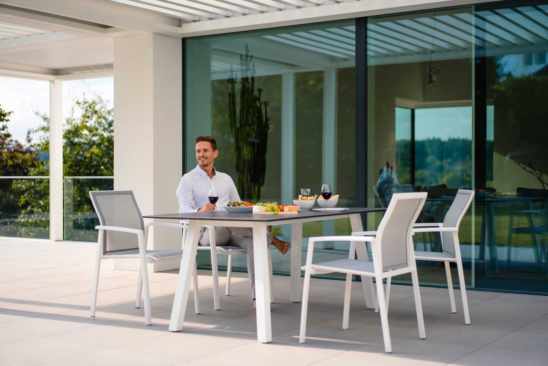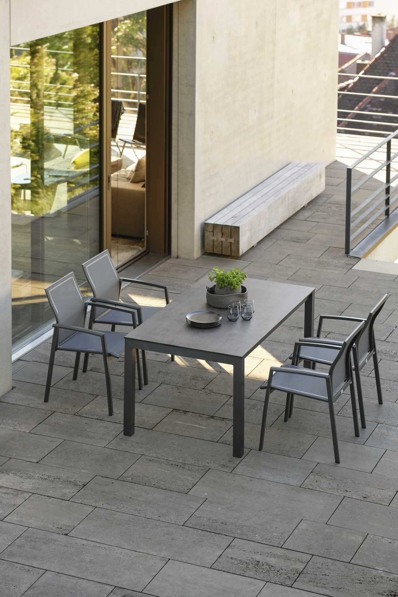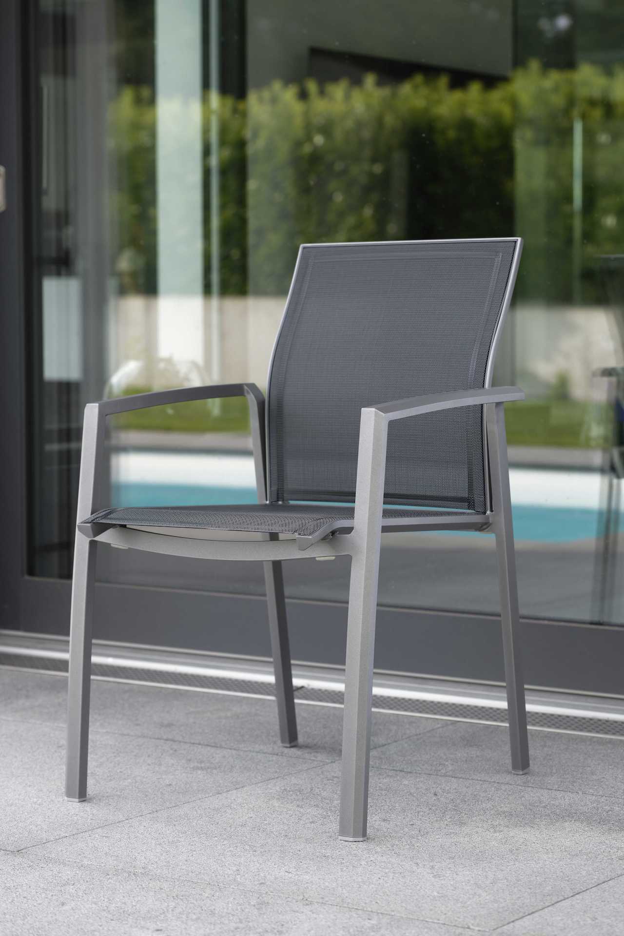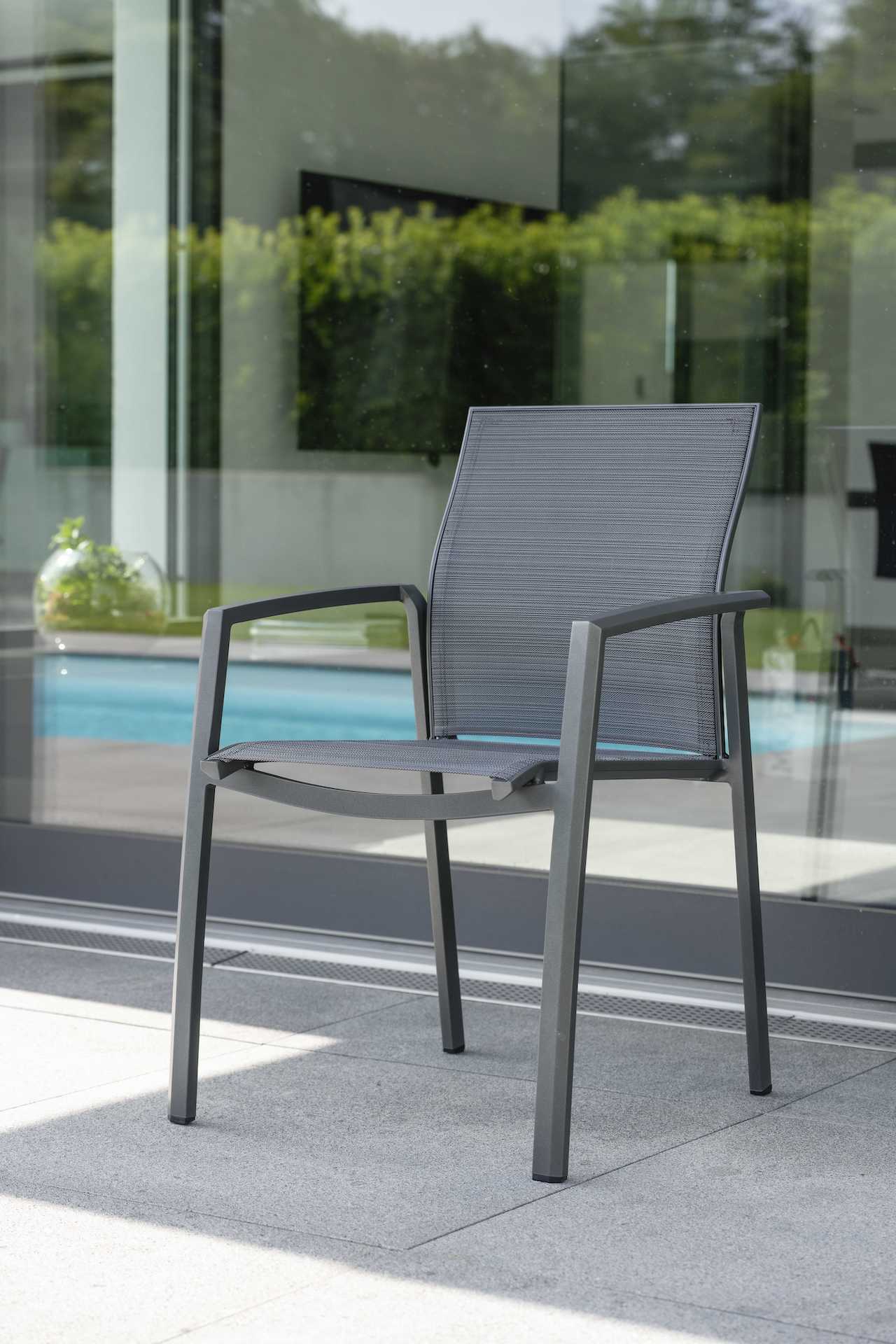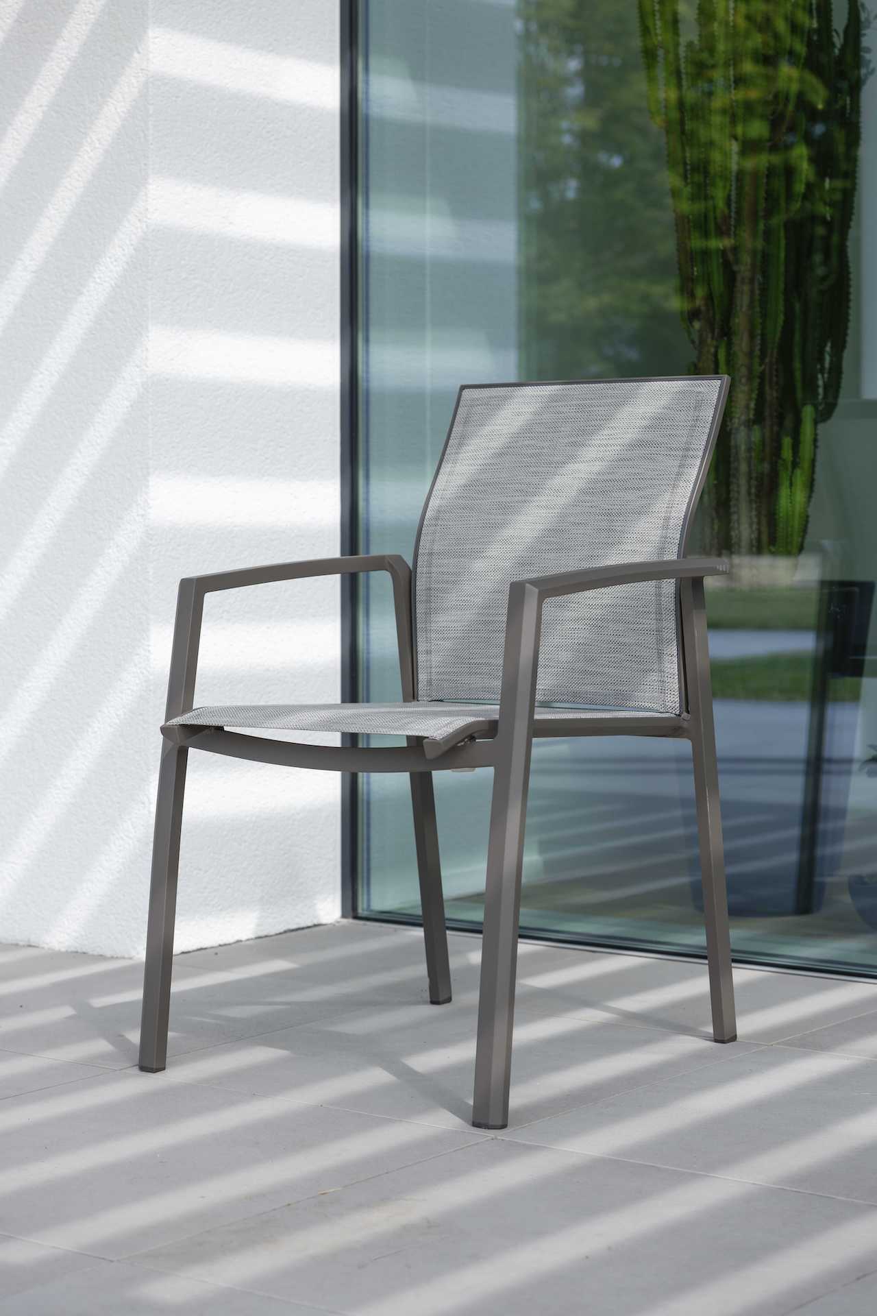KARI to seria krzeseł i foteli ogrodowych o lekkiej, aluminiowej konstrukcji i siedziskiem