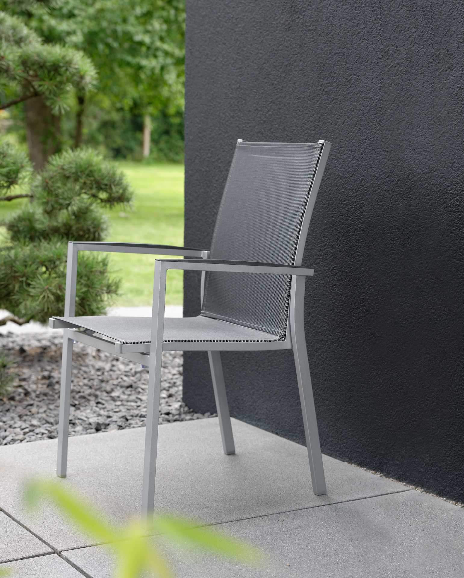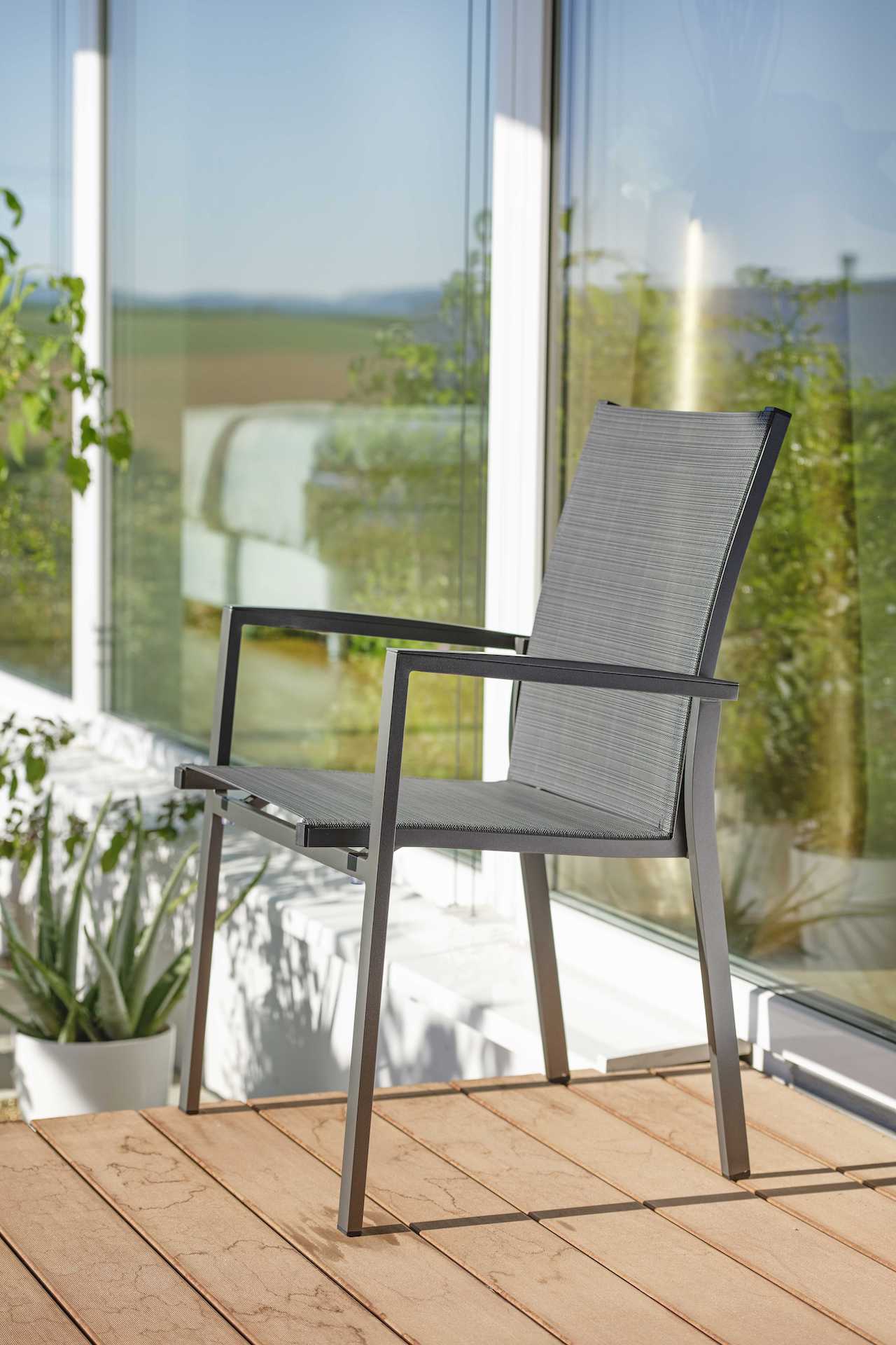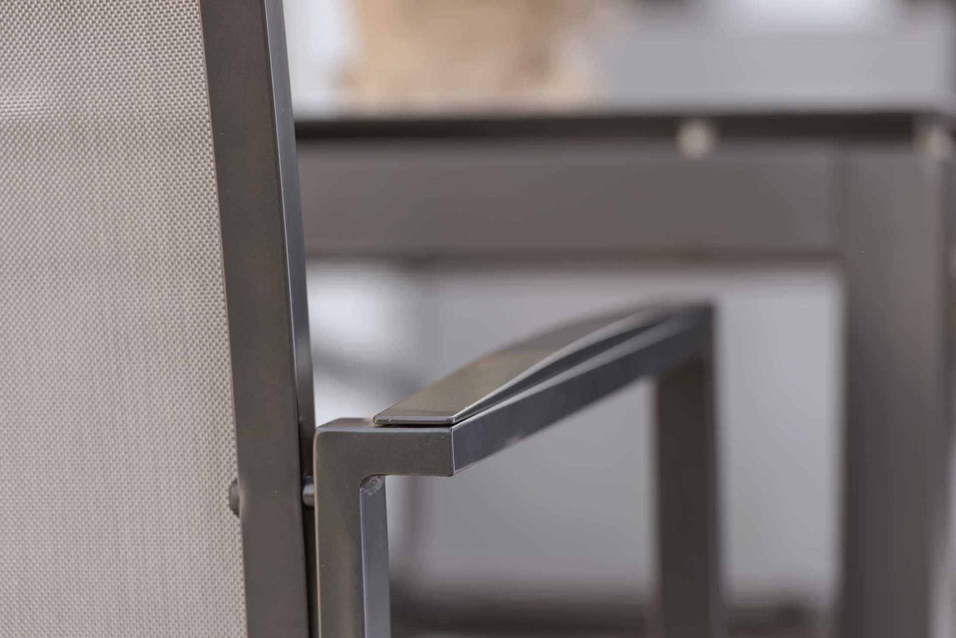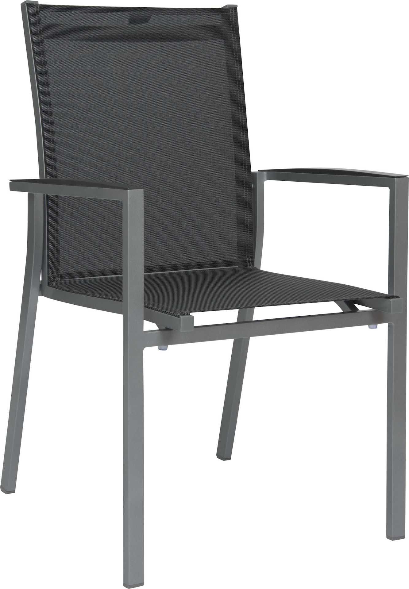 Krzesło ogrodowe New levanto na oparciu i siedzisku posiada materiał w formie miękkiej i elastycznej siateczki.