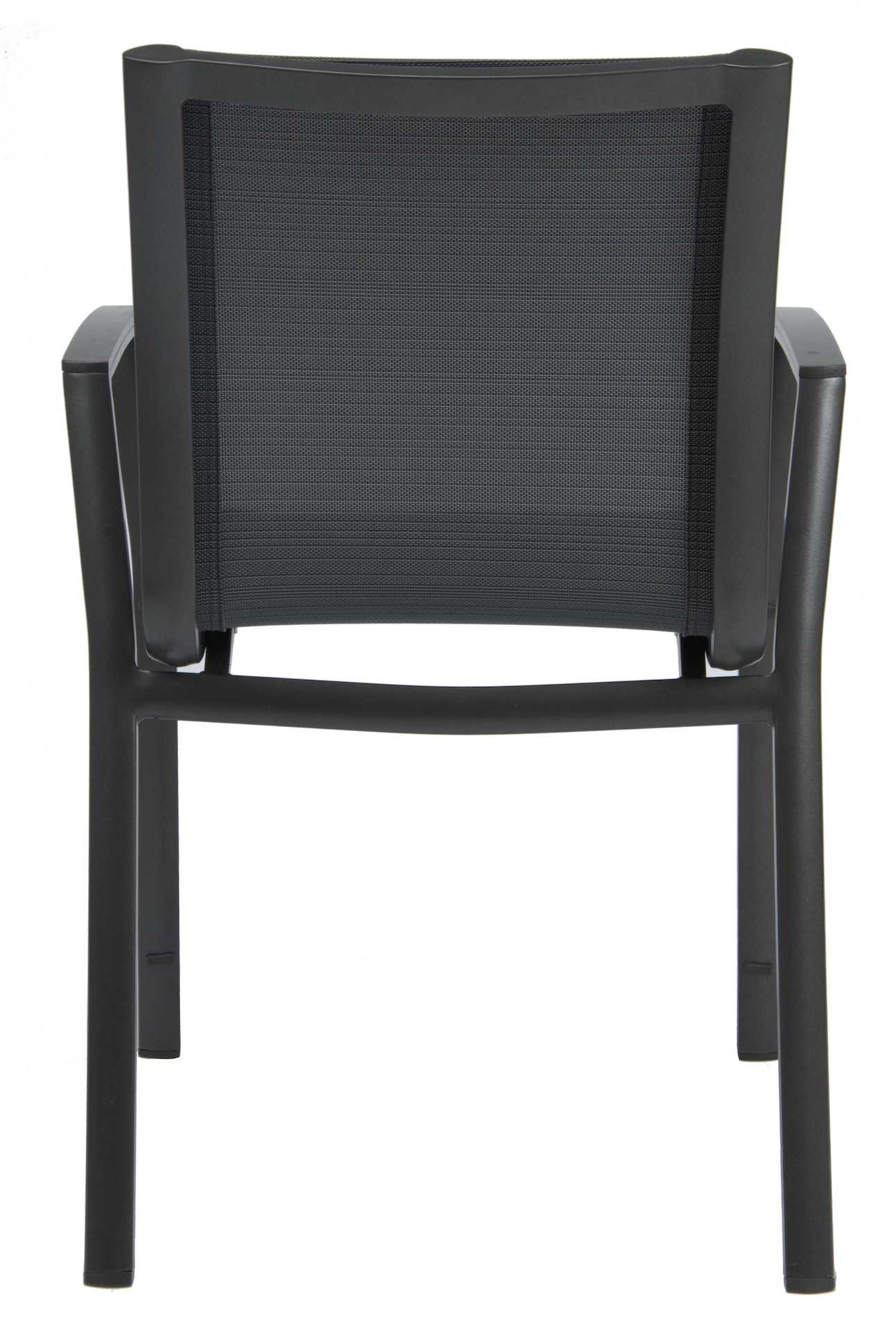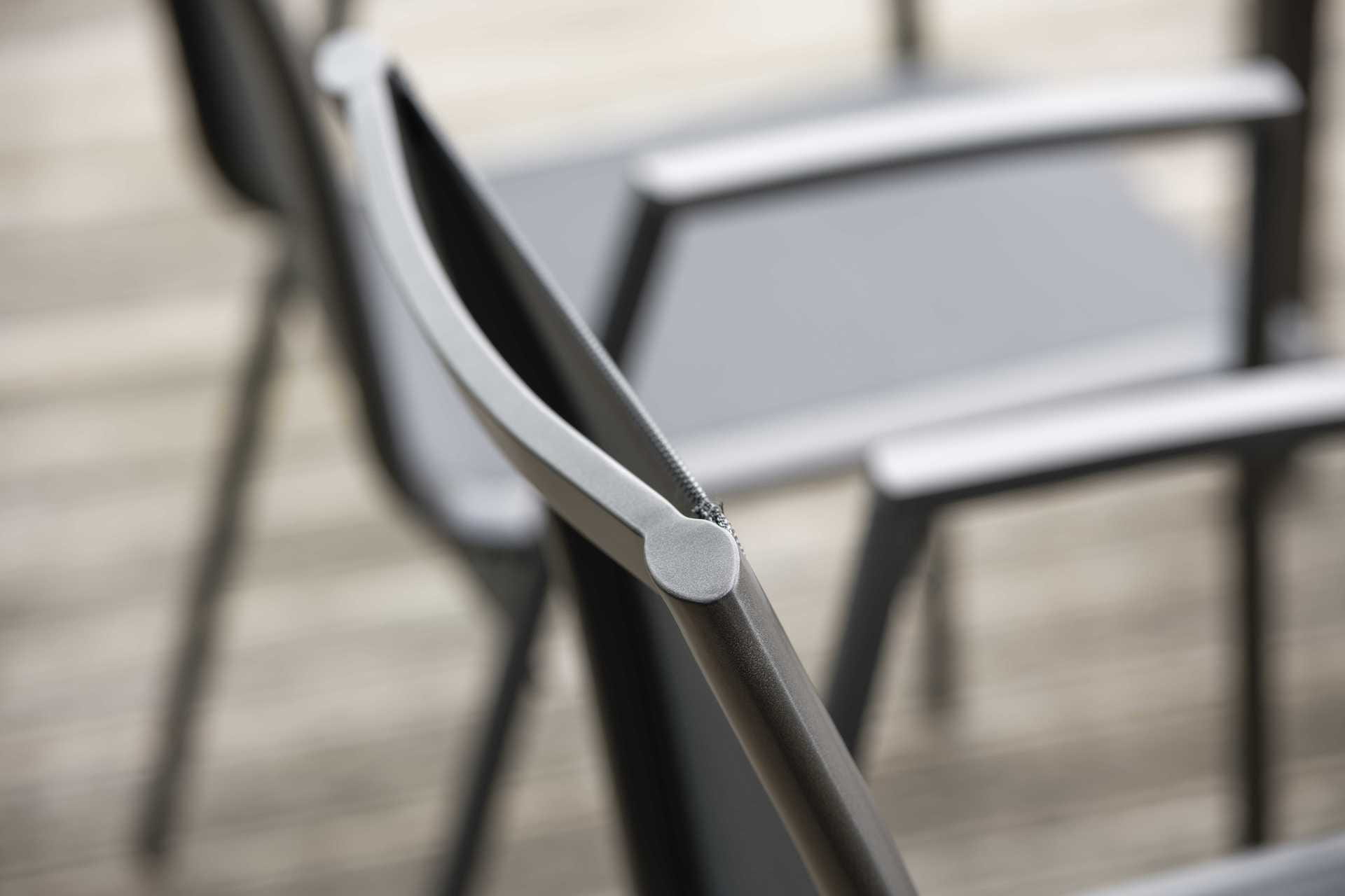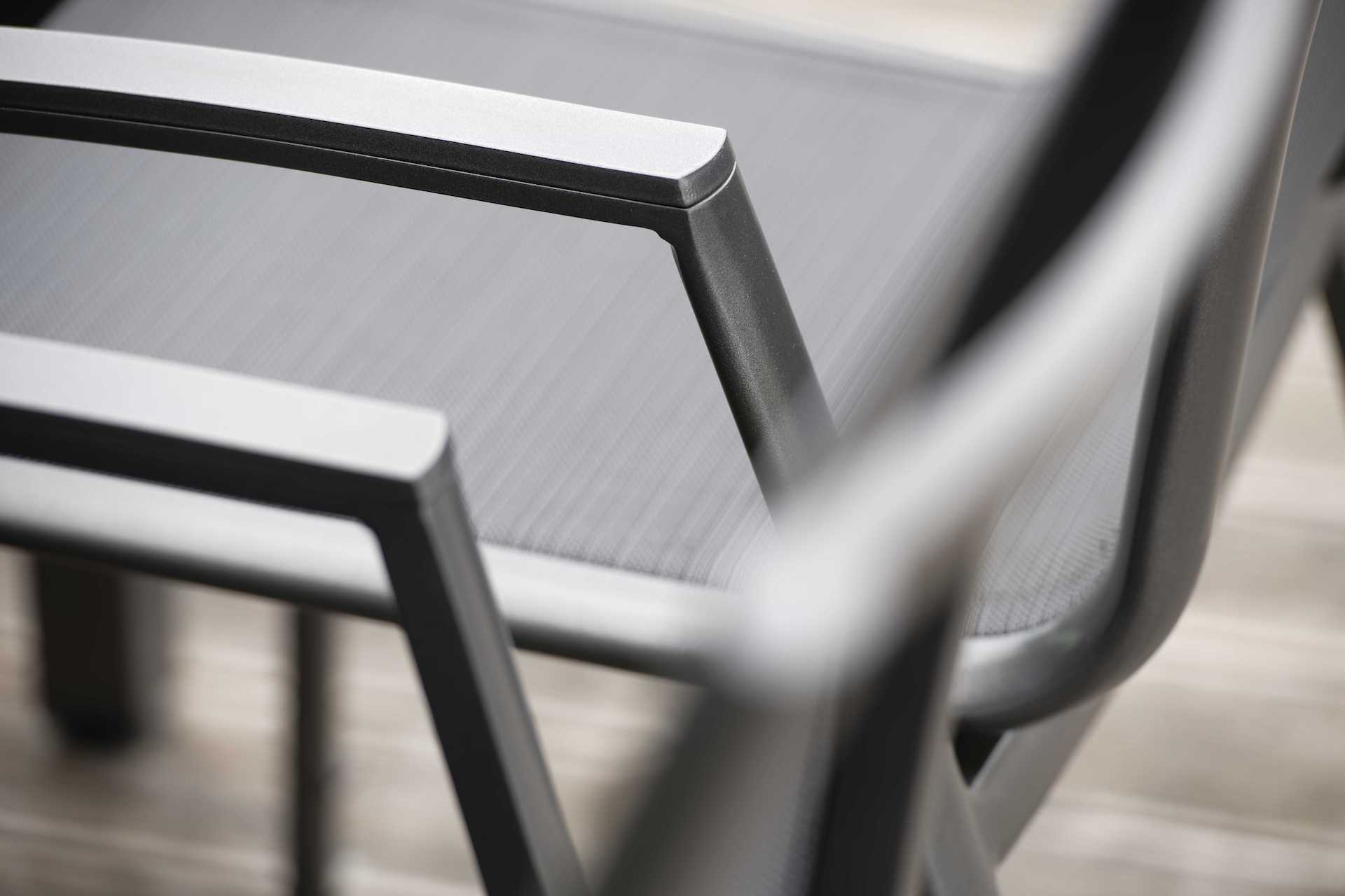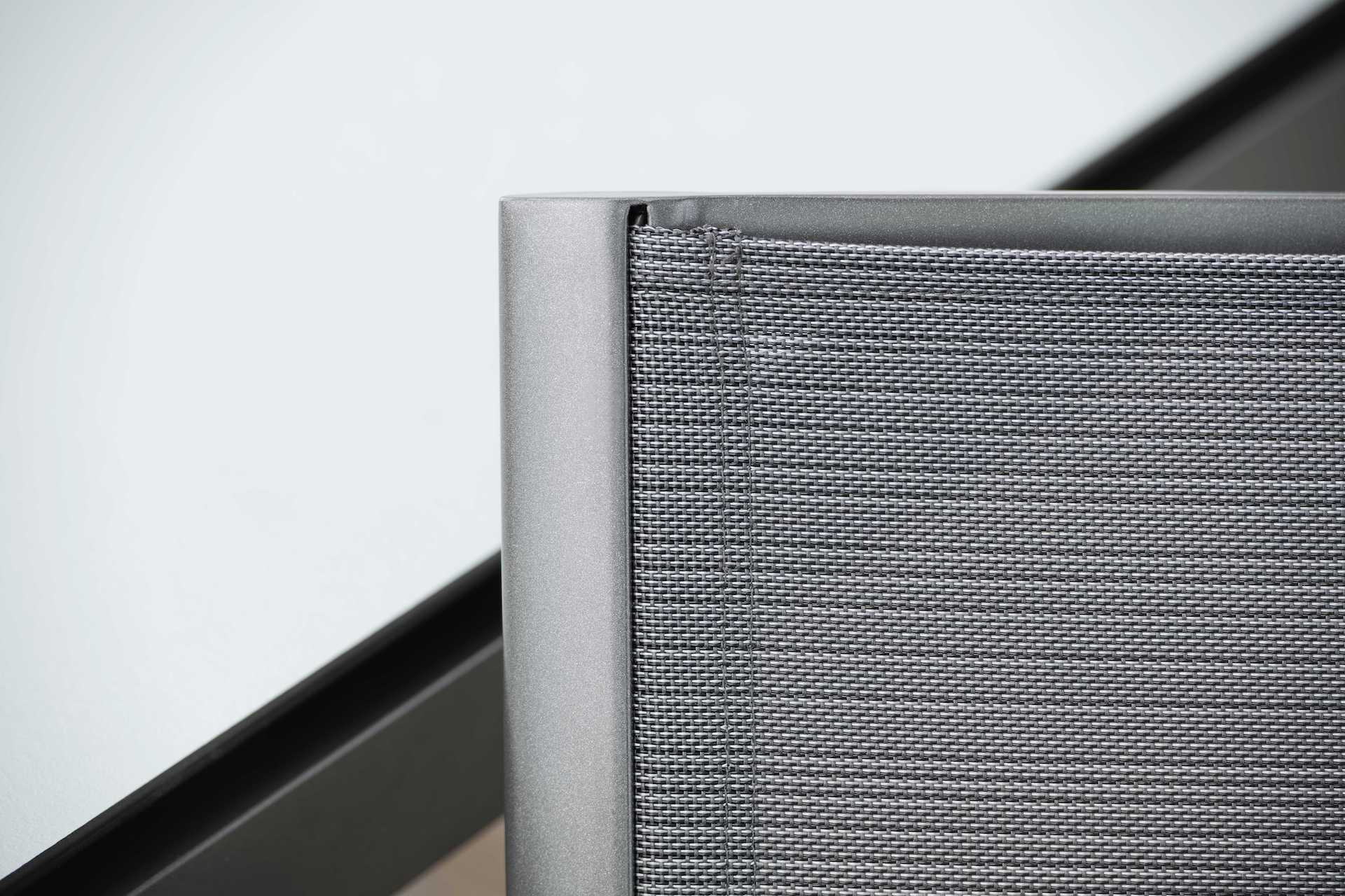 Krzesło ogrodowe Ron na oparciu i siedzisku posiada materiał w formie miękkiej i elastycznej siateczki.