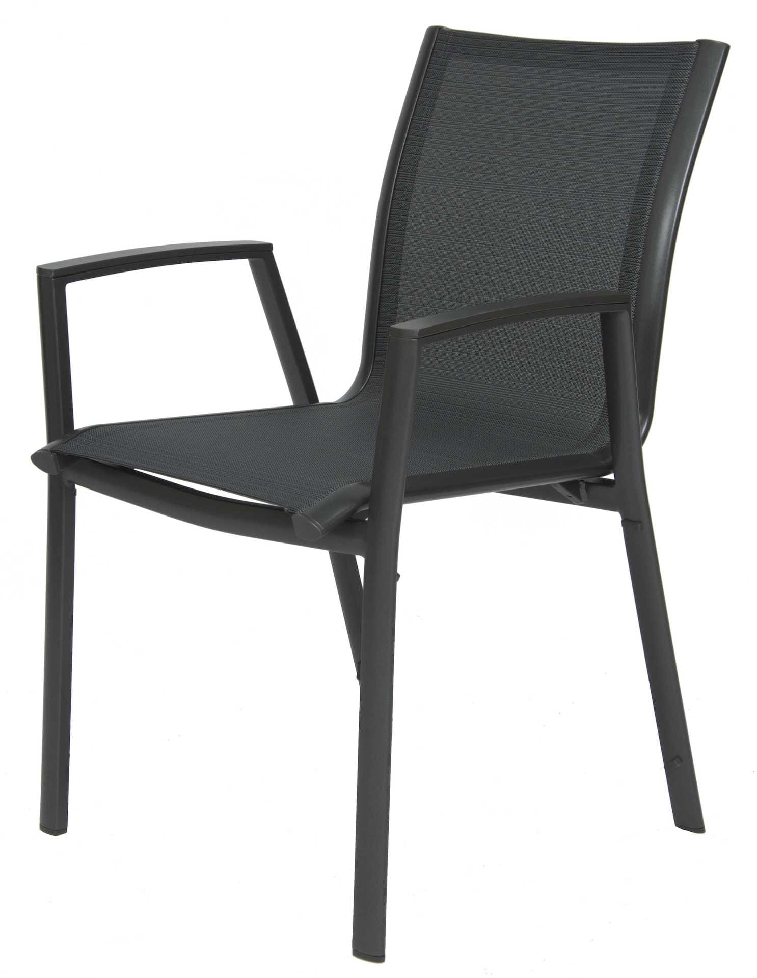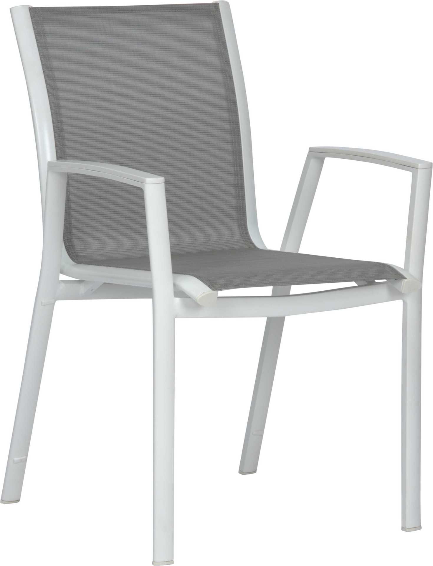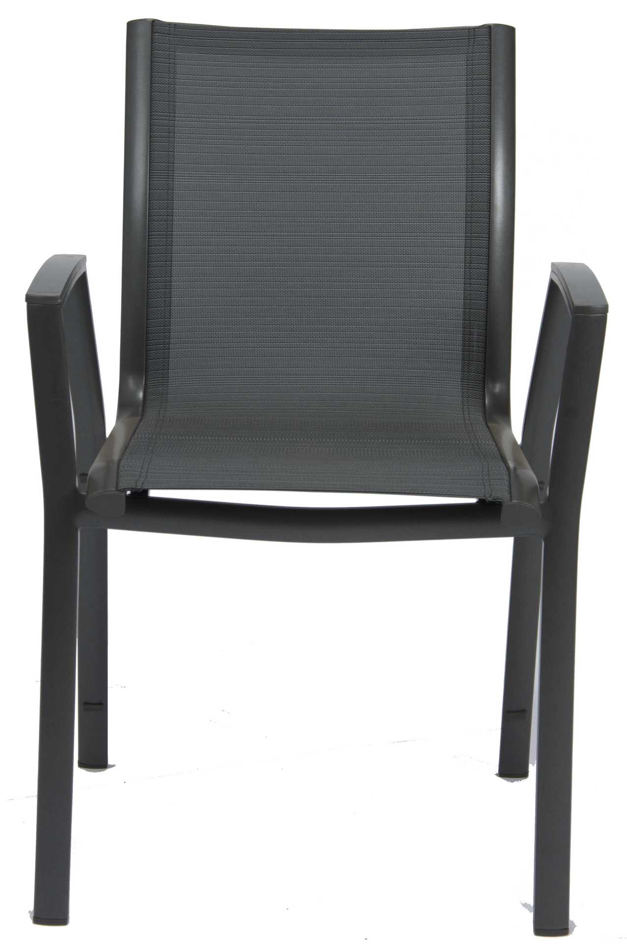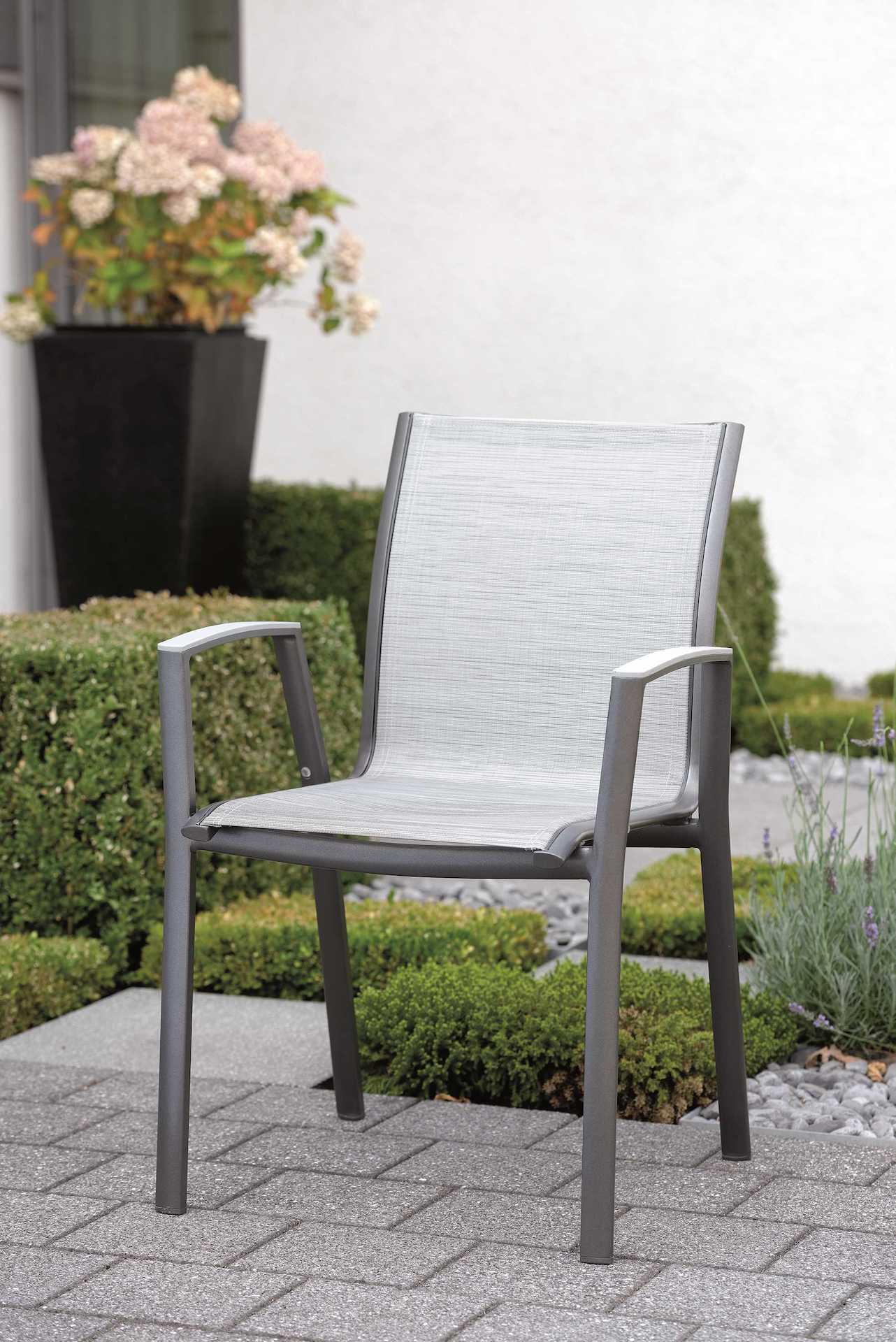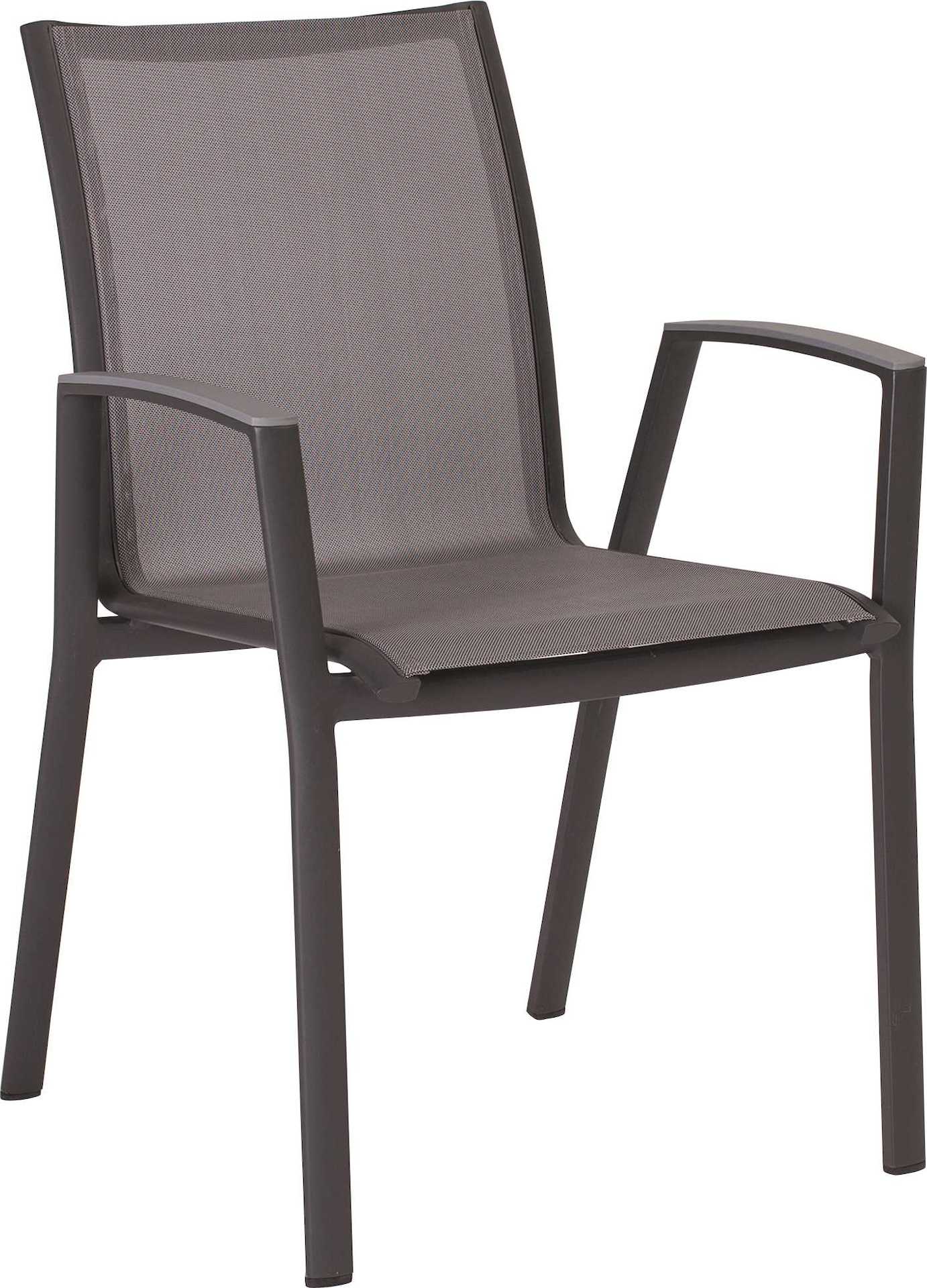 Krzesło ogrodowe Ron na oparciu i siedzisku posiada materiał w formie miękkiej i elastycznej siateczki.