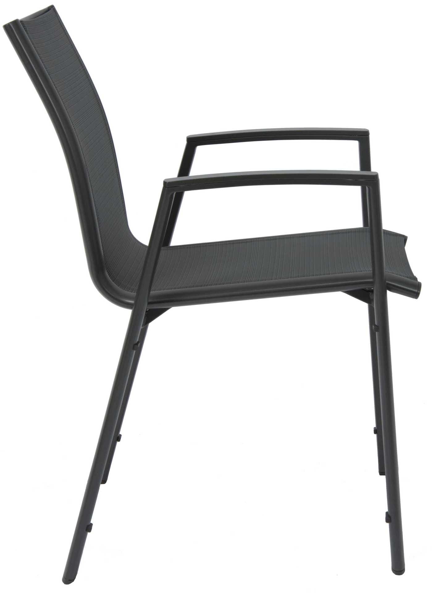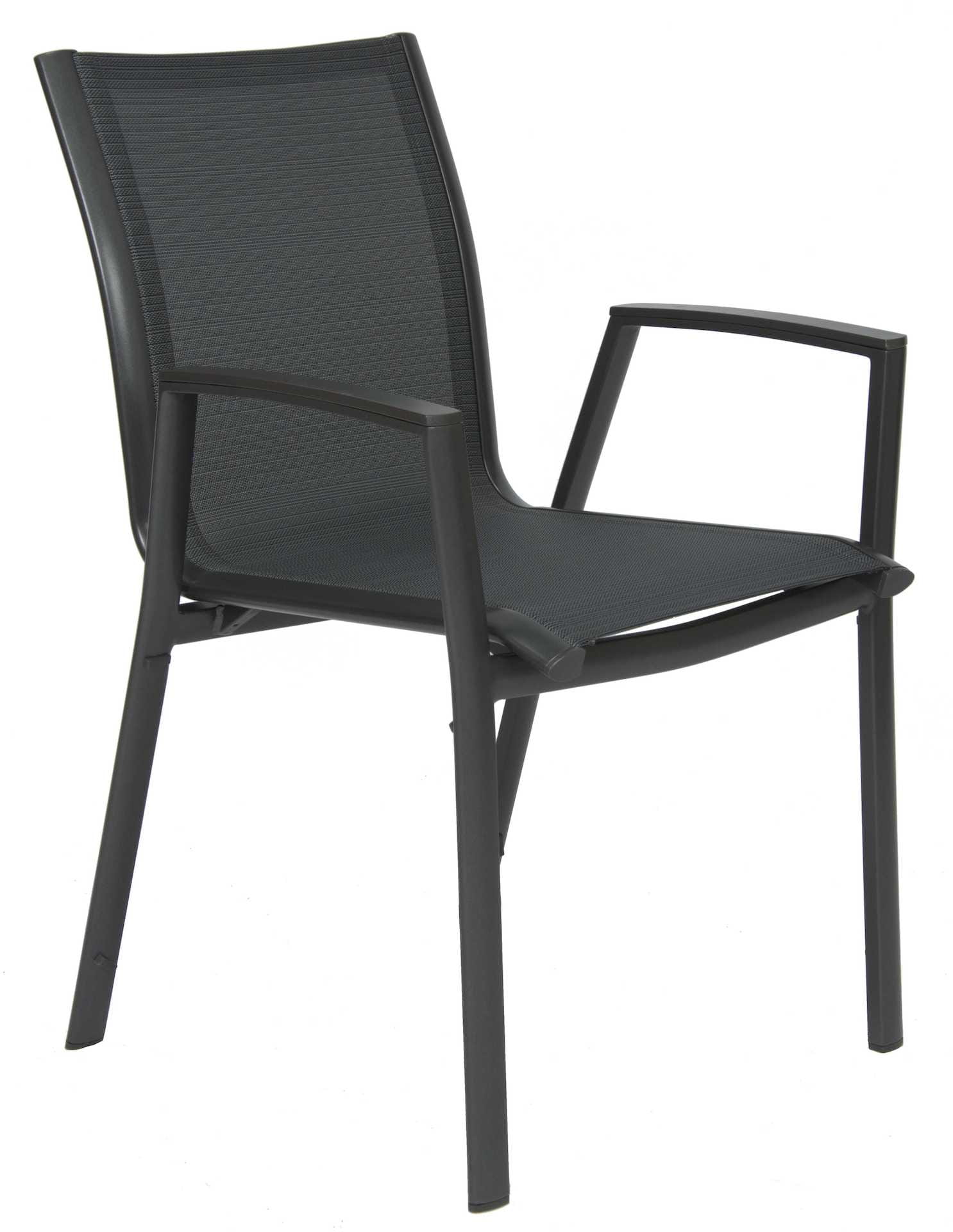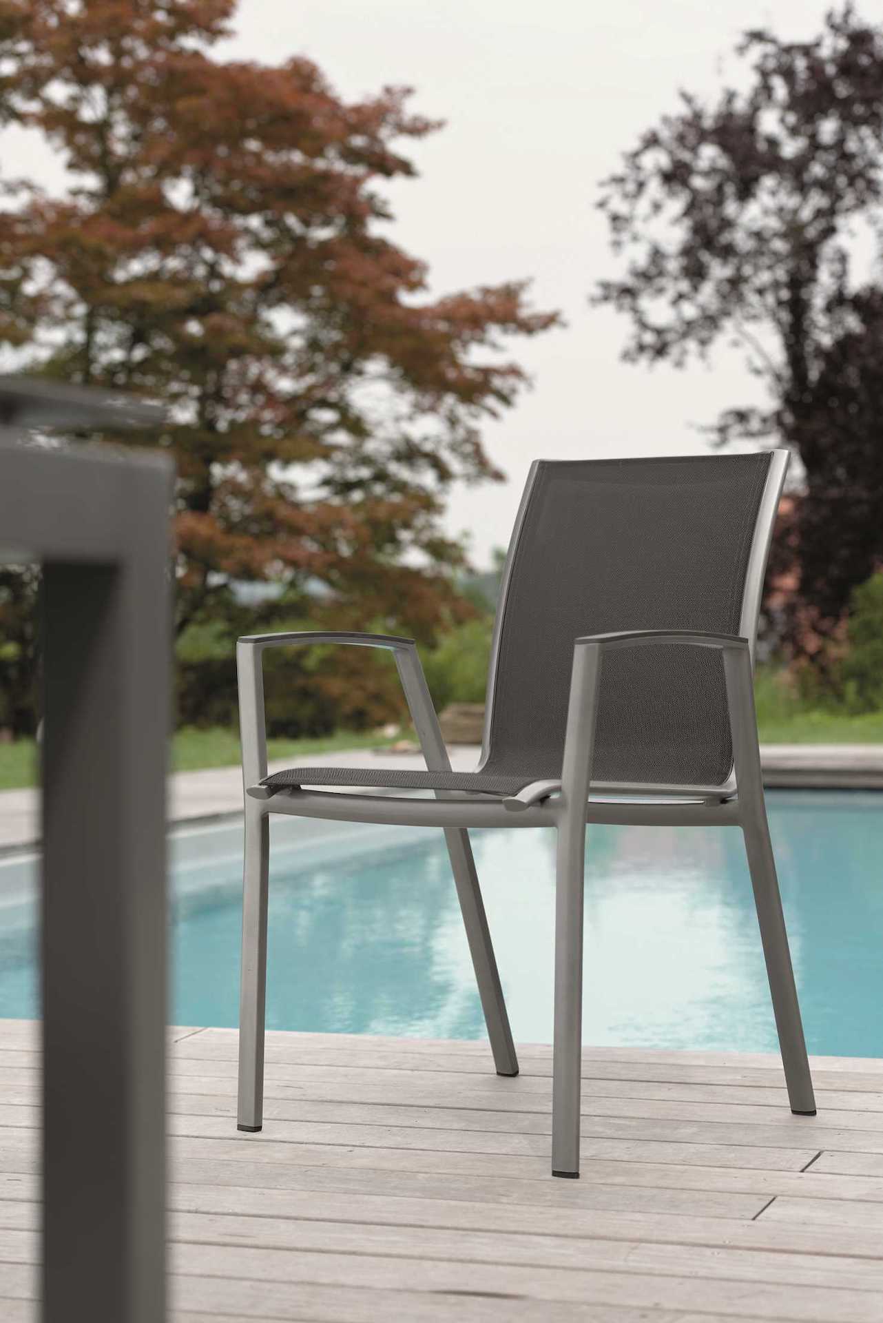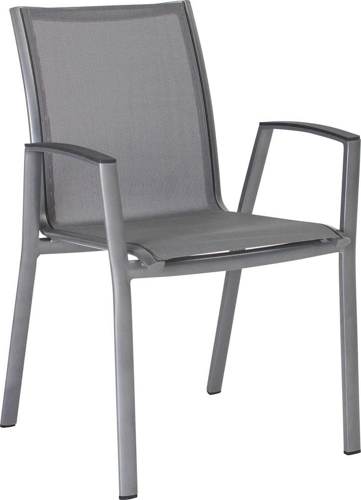 Krzesło ogrodowe Ron na oparciu i siedzisku posiada materiał w formie miękkiej i elastycznej siateczki.