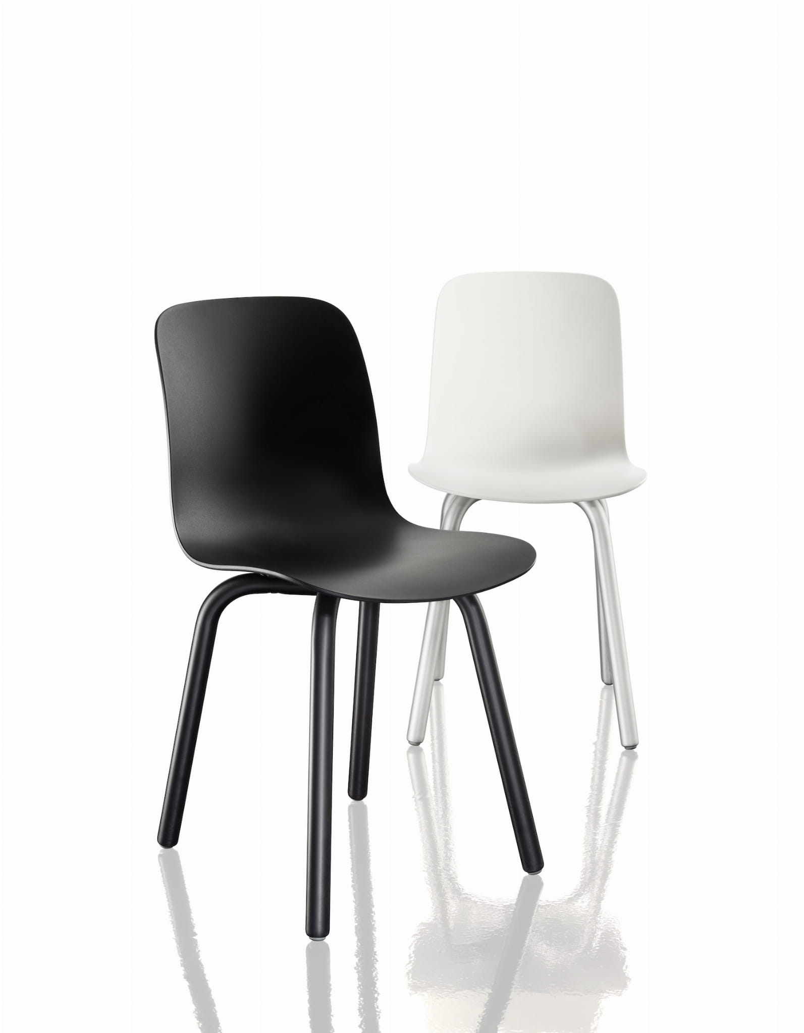 Dostępne są z nogami w naturalnym kolorze aluminium lub czarnymi a siedzisko:
