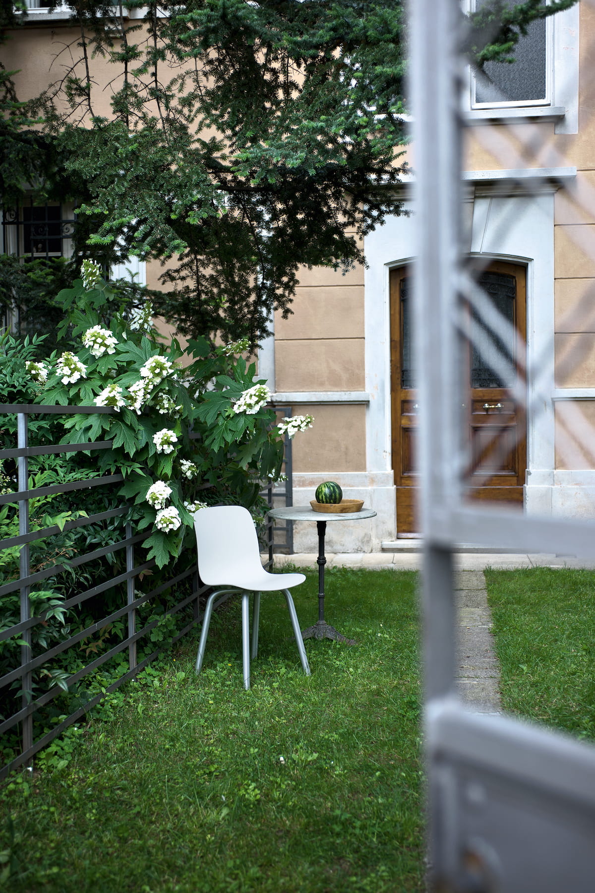 to krzesło ogrodowe, o prostej lini i formie, tworzone z myślą o nogach w kształcie litery U