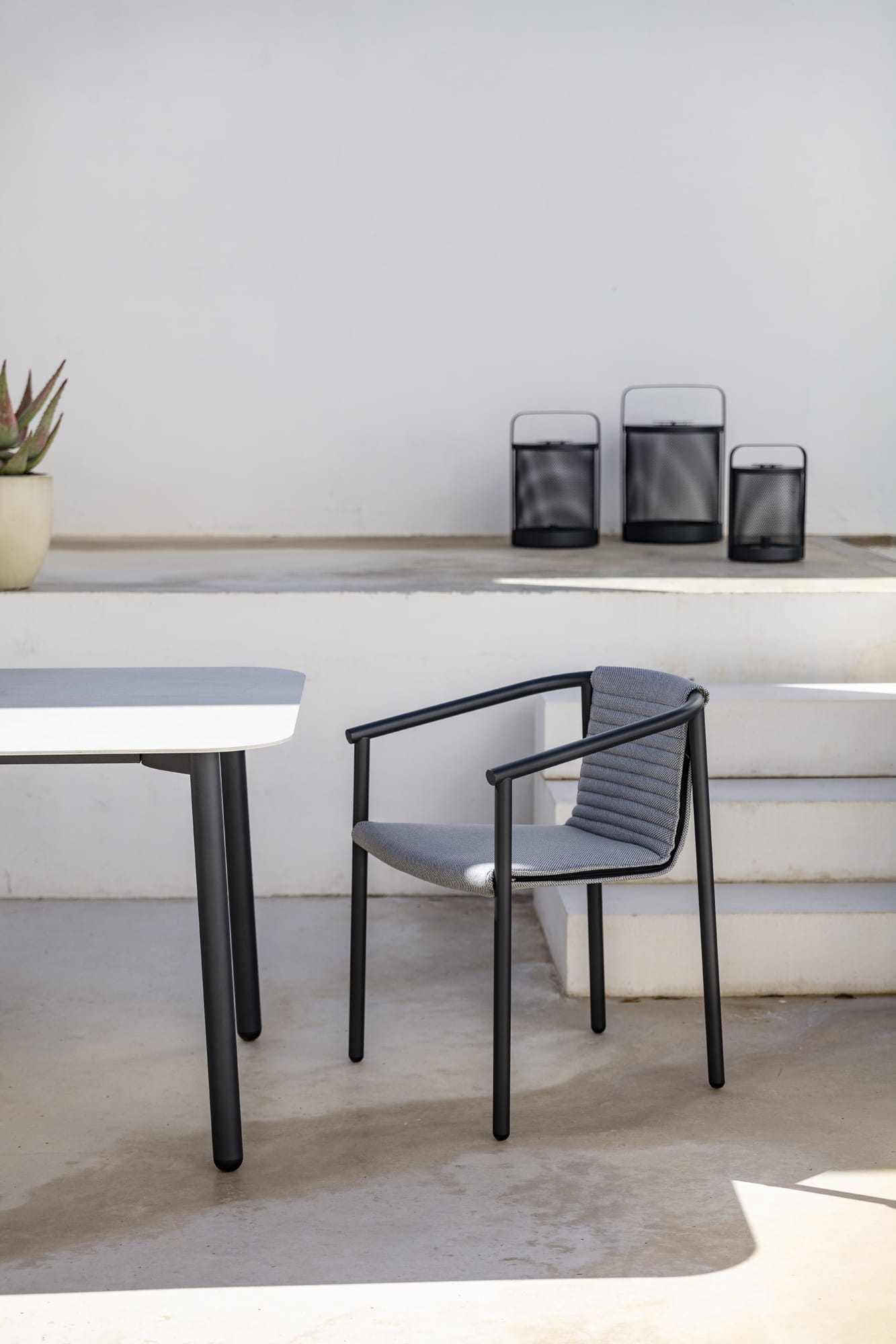 Meble ogrodowe DUCT wykonane są z ramy ze stali nierdzewnej lub aluminium malowanego proszkowo.