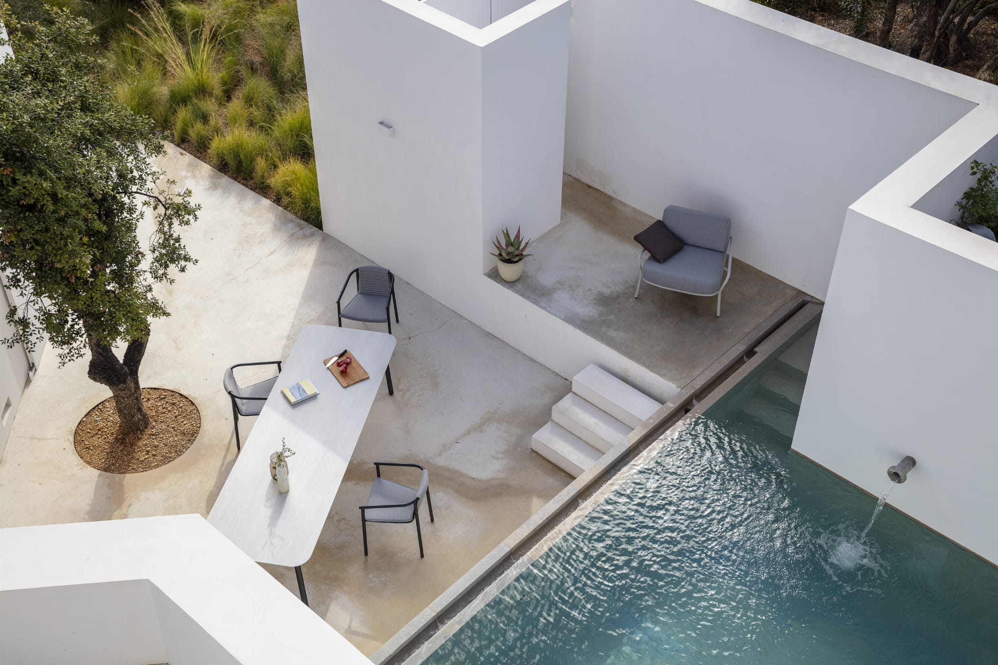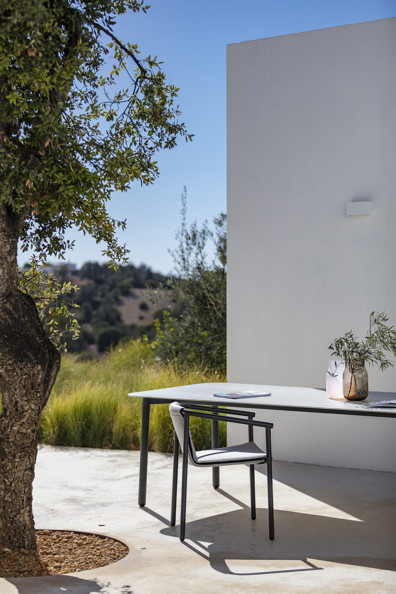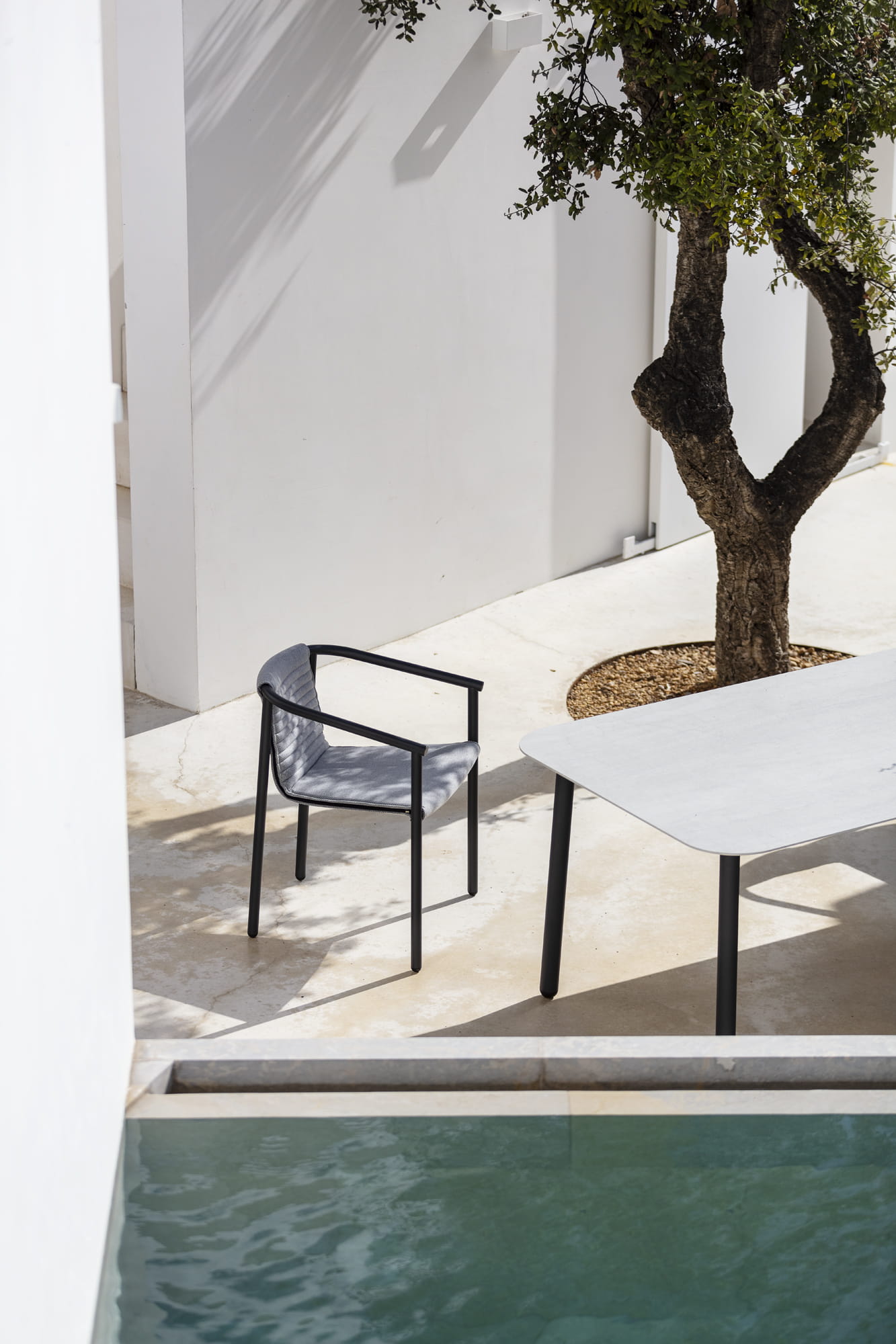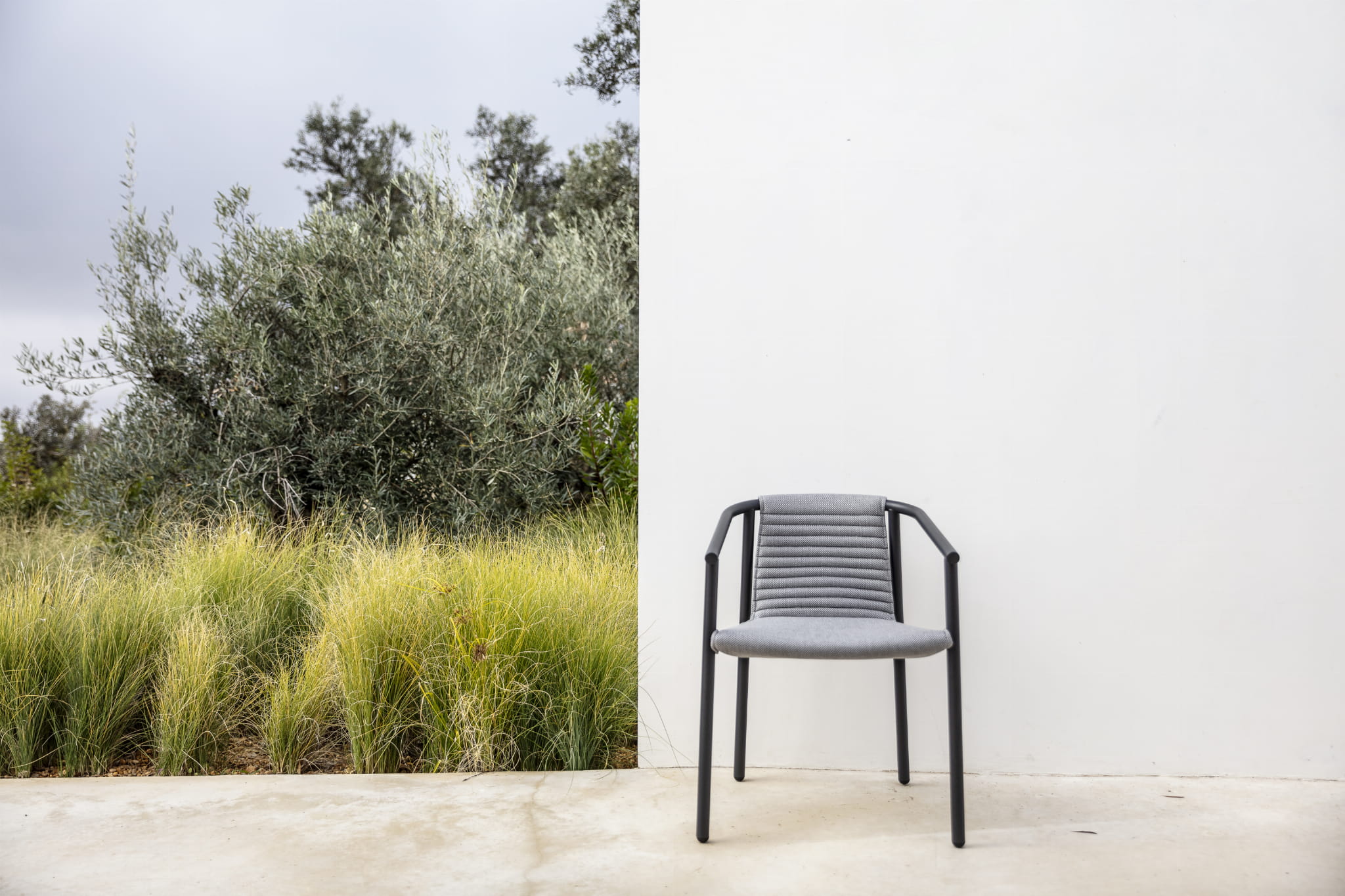 Krzesło ogrodowe DUCT jest zaokrąglone w każdym możliwym miejscu przez co idealnie integruje się z otoczeniem, nie przytłacza i doskonale sprawdzi się jako nowoczesny mebel ogrodowy.