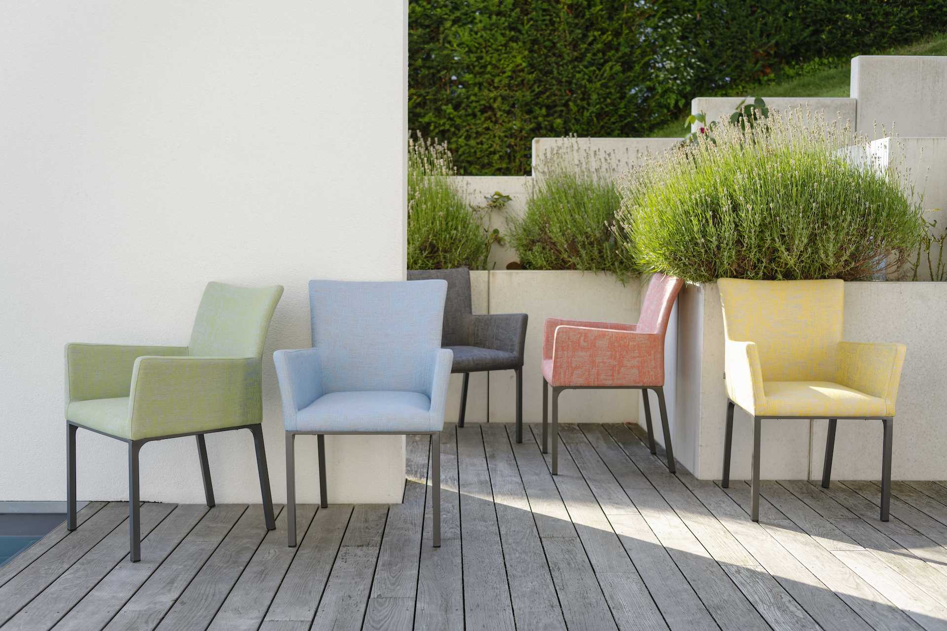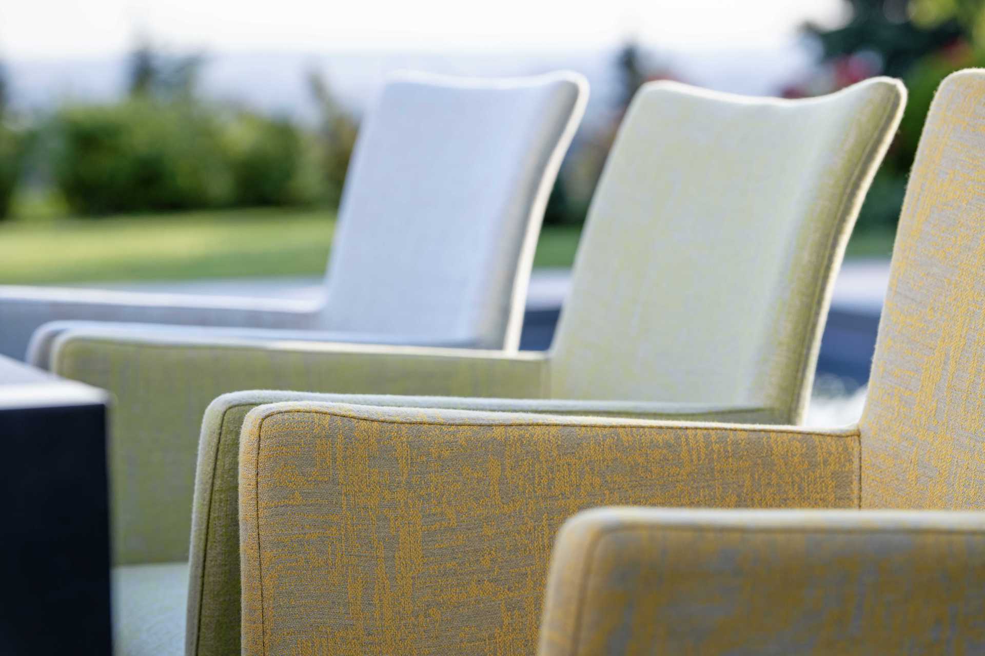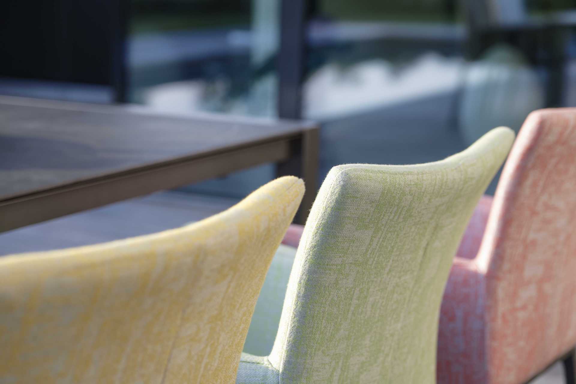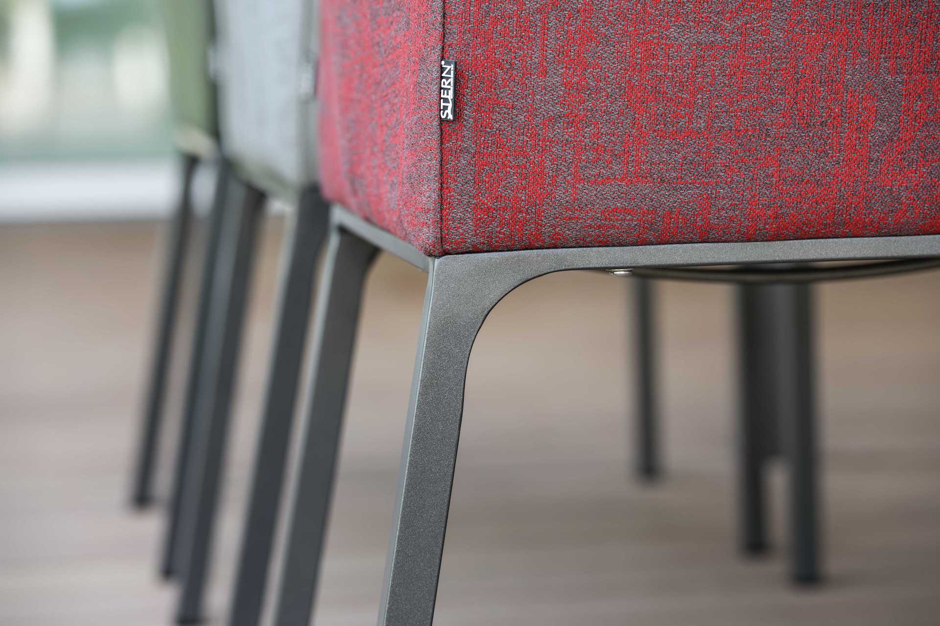 Artus to linia krzeseł tapicerowanych wykonanych z wysokiej jakości, miękkiej tkaniny (100% poliakryl) na stelażu ze stali nierdzewnej malowanej proszkowo.