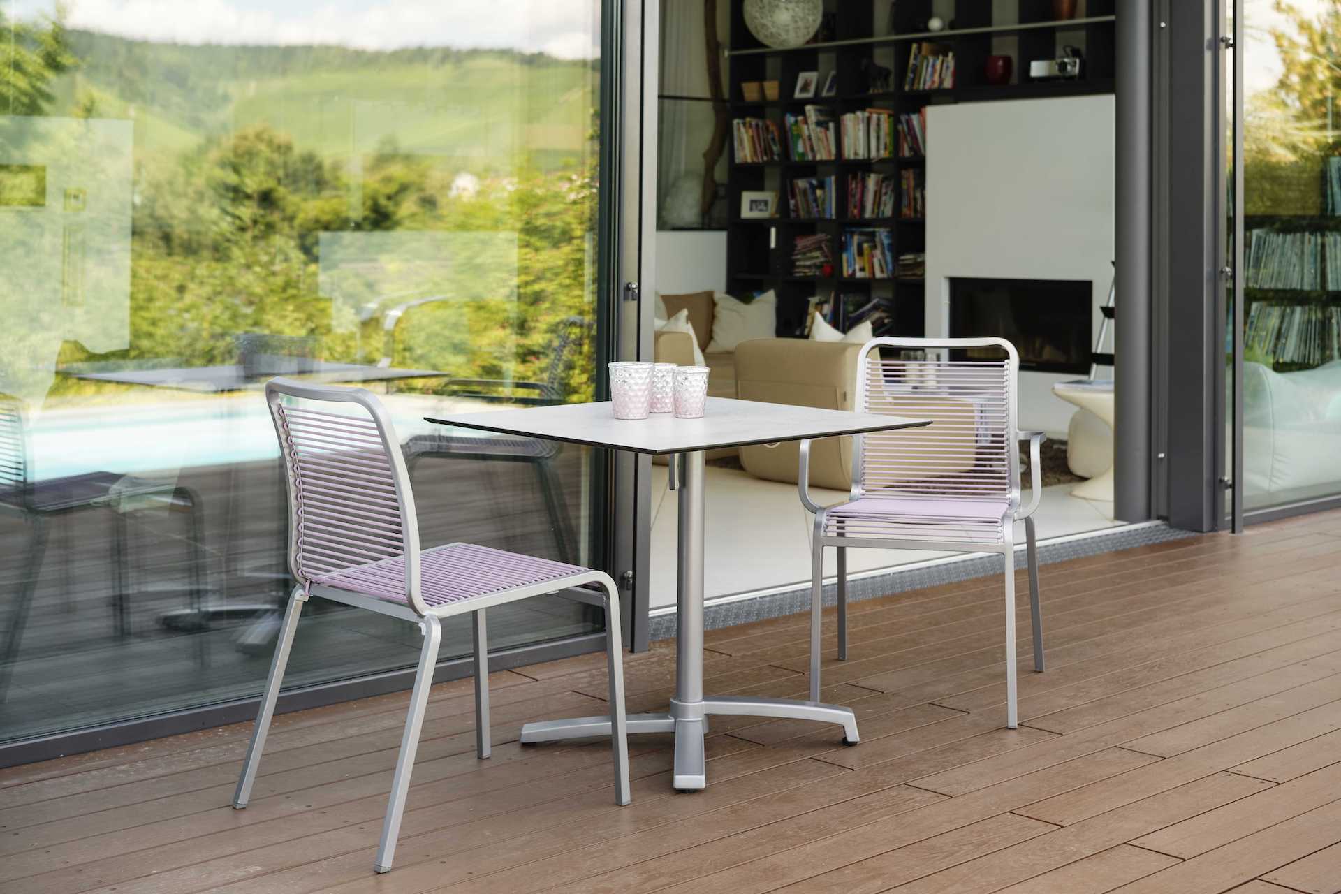to seria krzeseł ogrodowych o przyjemnym delikatnym kształcie wygiętych profili aluminiowych,
