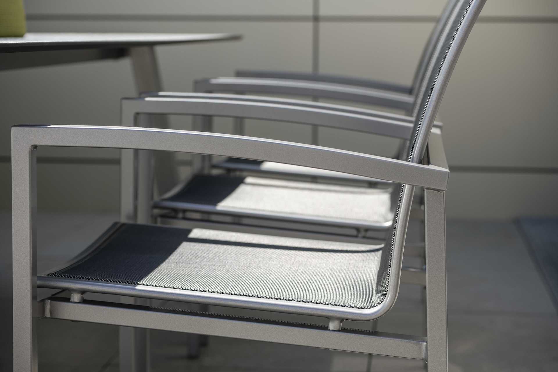 Dostępne w kilku kolorach stelaża posiadają siedziska z wytrzymałej siatki "Textilen".