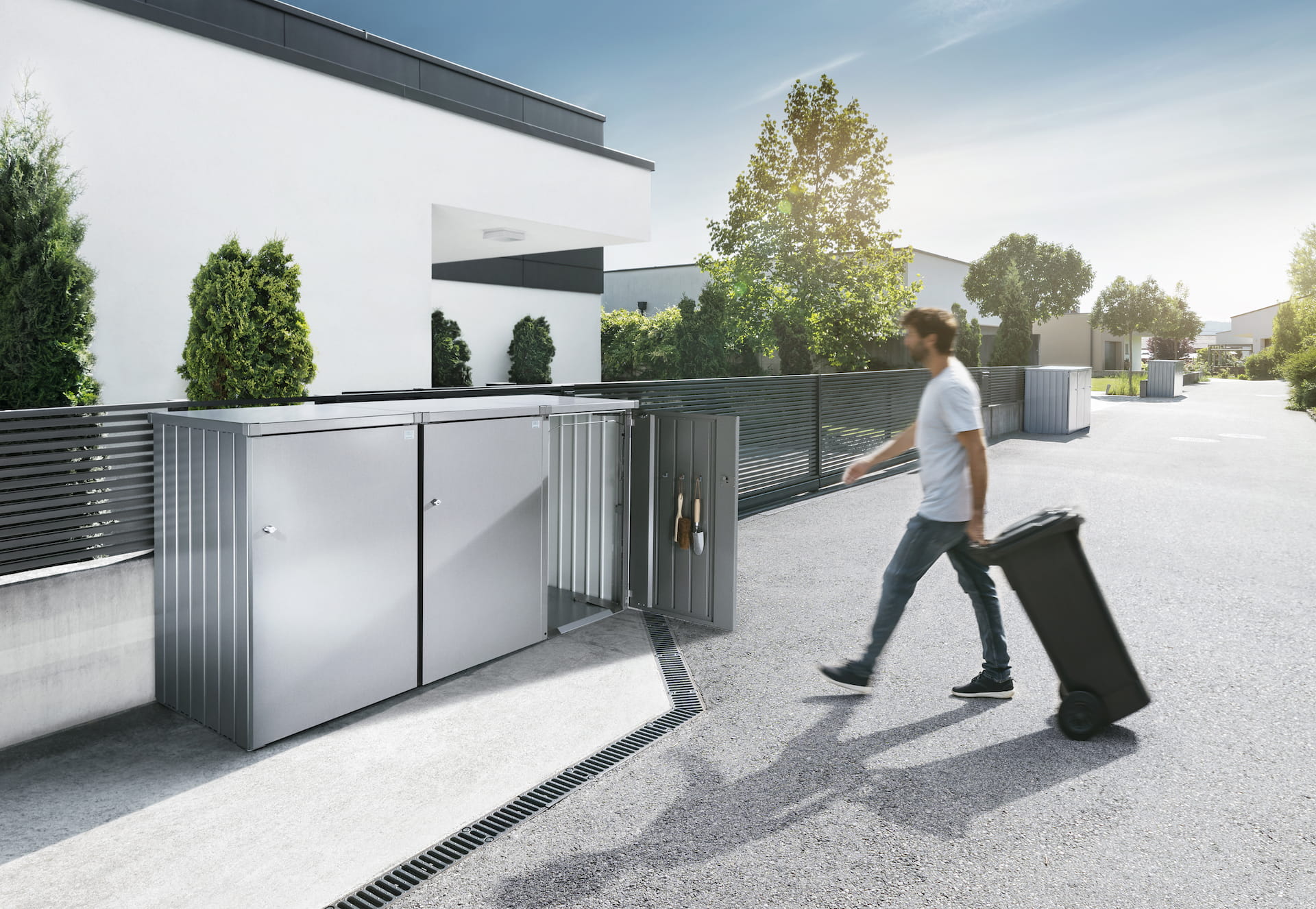 Pojemniki na kubły na śmieci Alex można łączyć ze soba tworząc tym samym systemy odpowiadające naszym potrzebom oraz przepisom o segregacji odpadów.