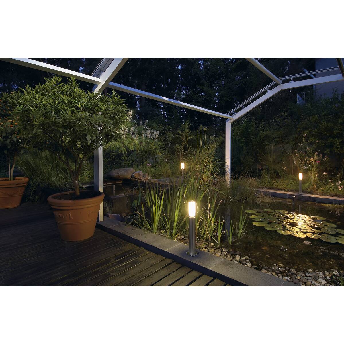 Oświetlenie zewnętrzne SLV tworzy wspaniałą atmosferę i olśniewający efekt w domu i ogrodzie, zarówno w mroźną noc zimową, jak i w ciepły letni wieczór.