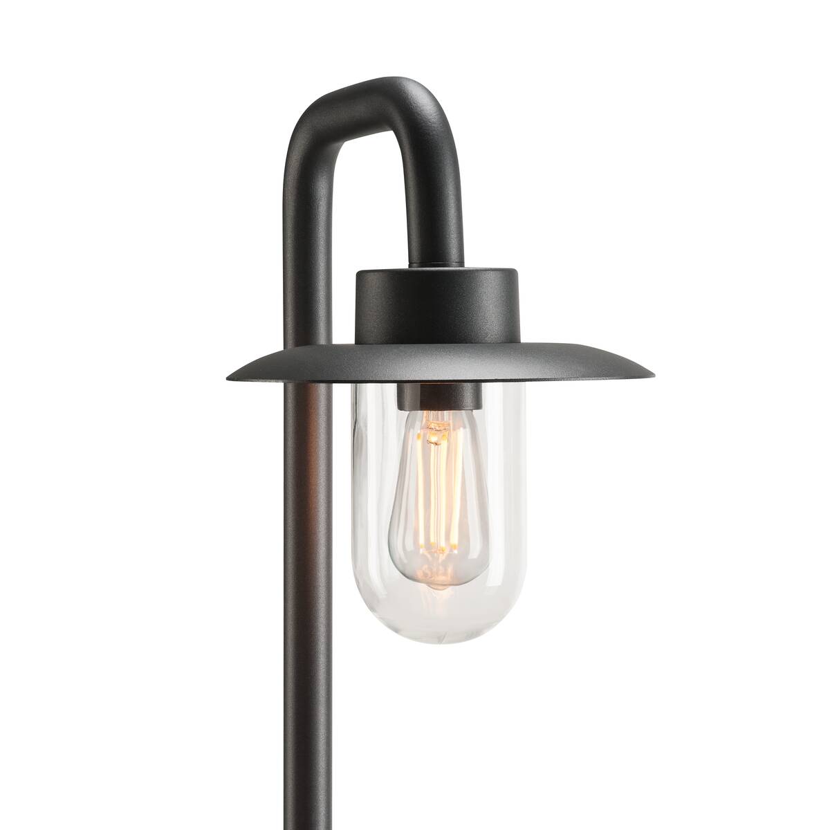 Nieruchoma głowica lampy zamontowana na zakrzywionym ramieniu jest skierowana w dół
