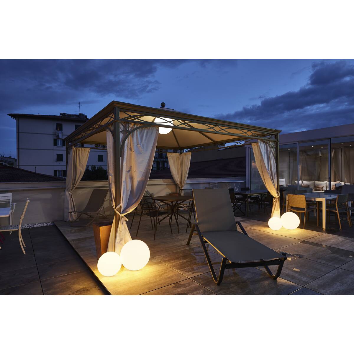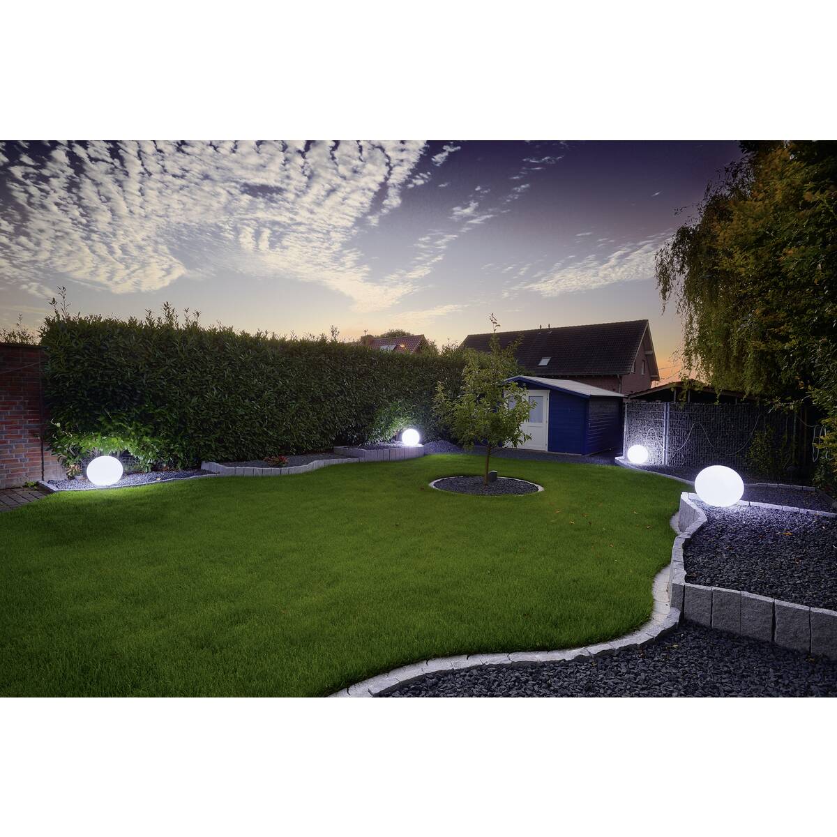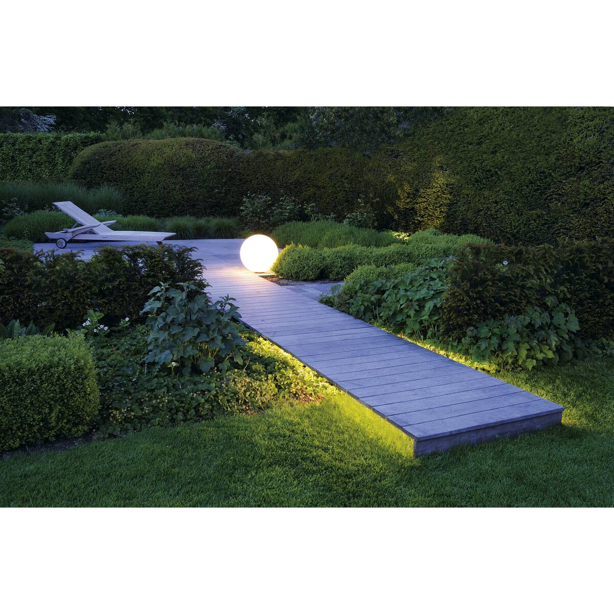 Umieszczając kilka lamp ROTOBALL w ogrodzie, można stworzyć efektowne, nastrojowe oświetlenie.