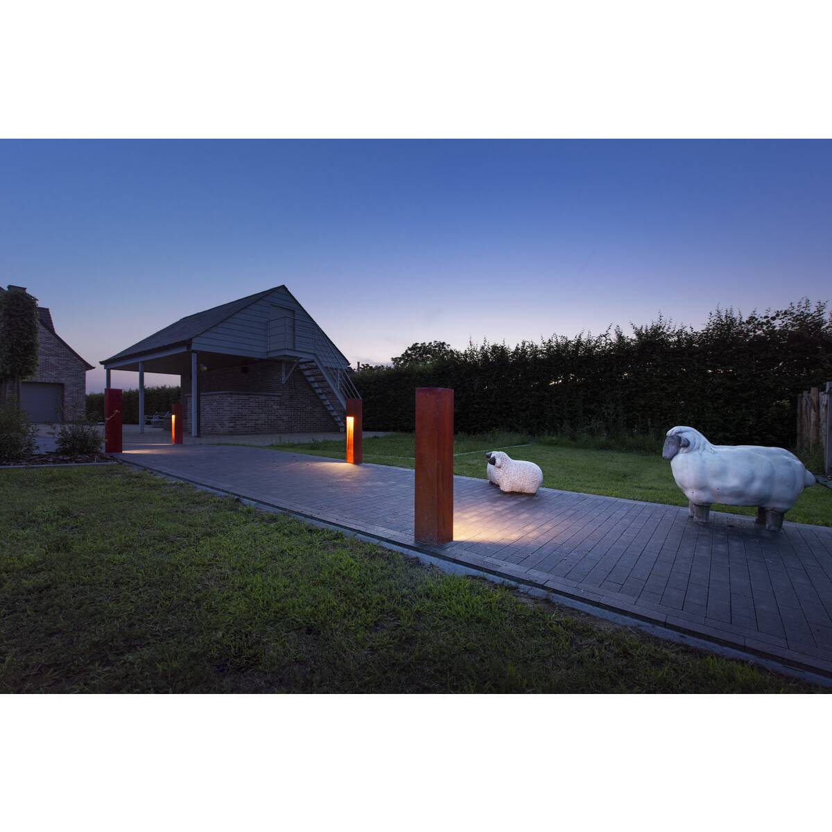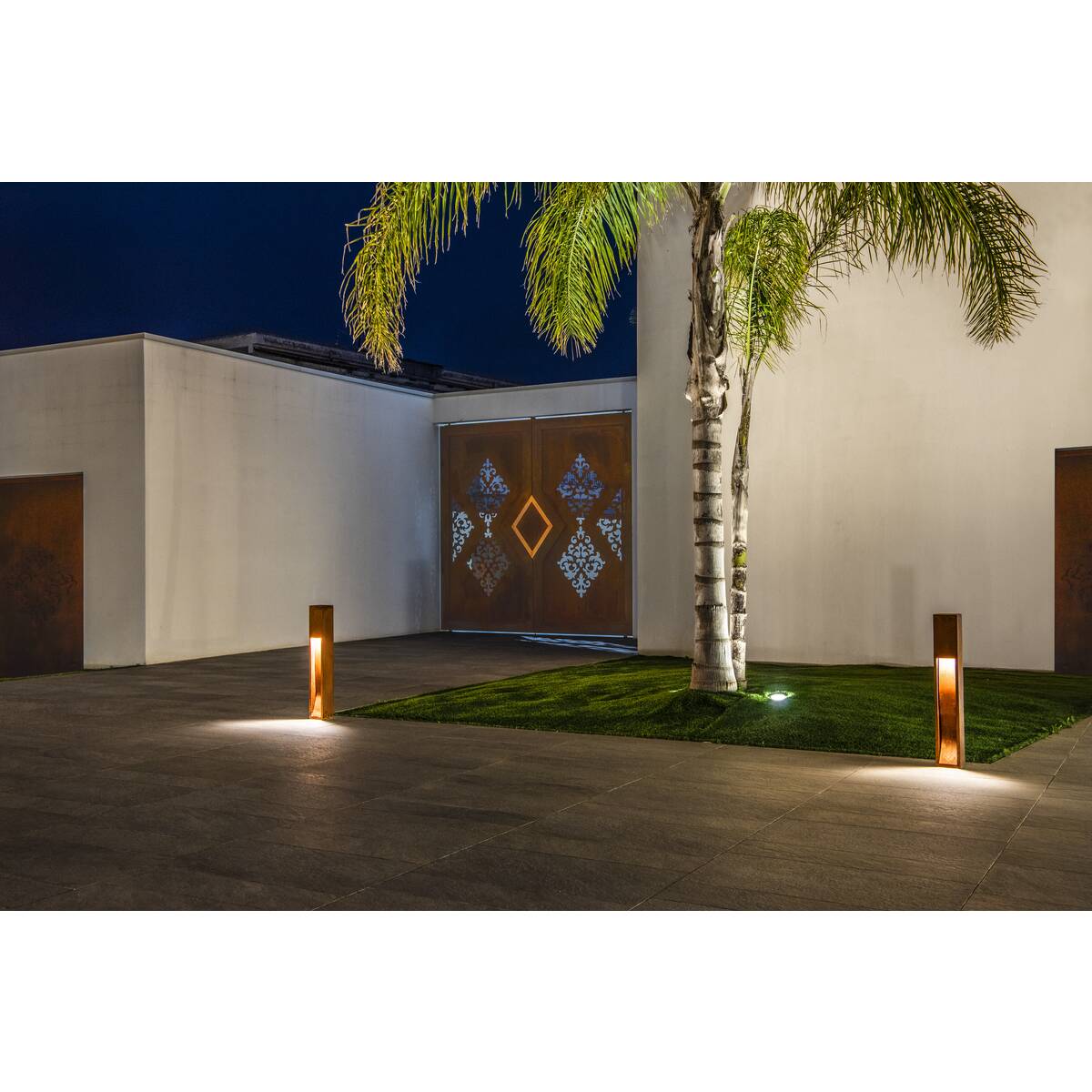 Lampy podłogowe z serii RUSTY, oferujące oświetlenie bezpośrednie, zachwycają swoim charakterystycznym, rdzawym wyglądem, uzyskanym dzięki specjalnej obróbce chemicznej stali FeCSi.