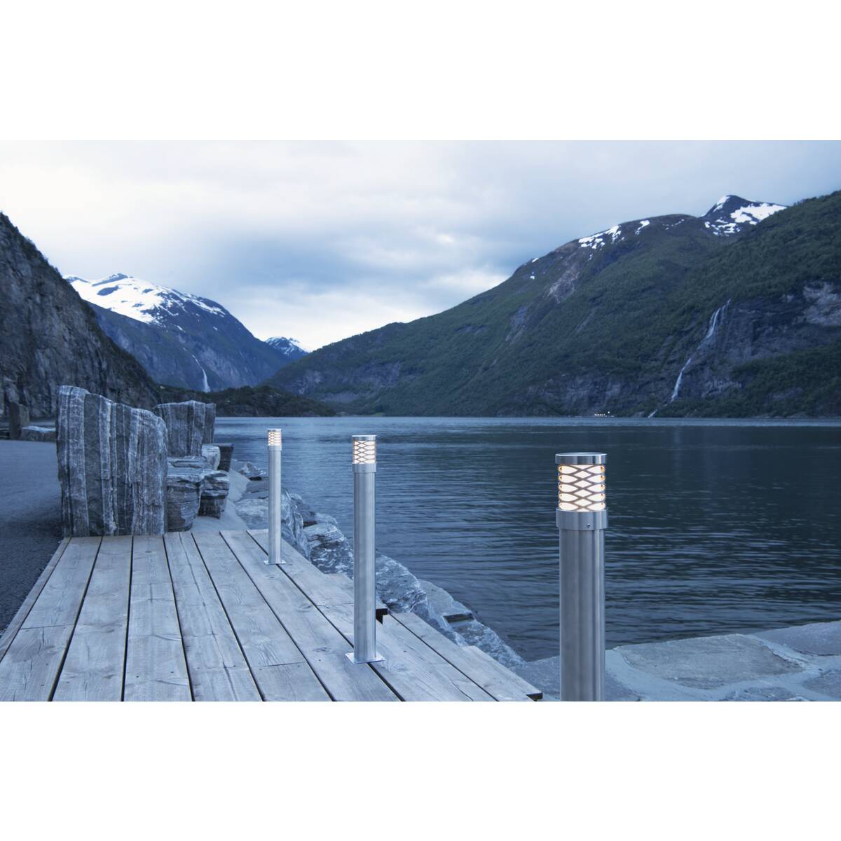 Powierzchnia świetlna z mlecznego poliwęglanu jest zakończona nasadką ze stali nierdzewnej.