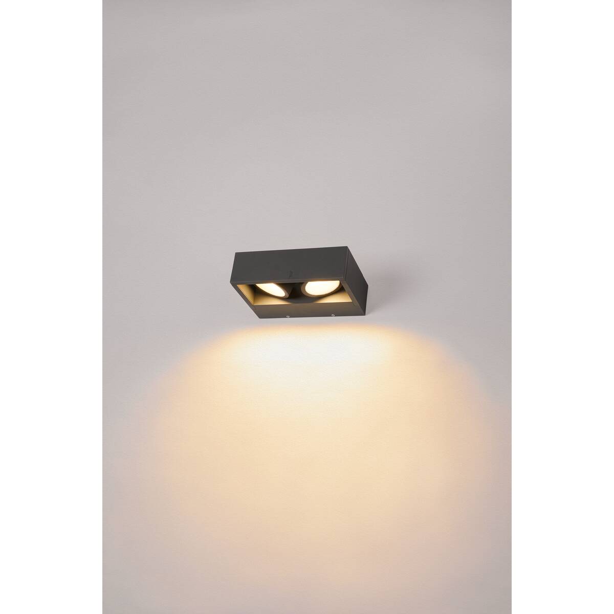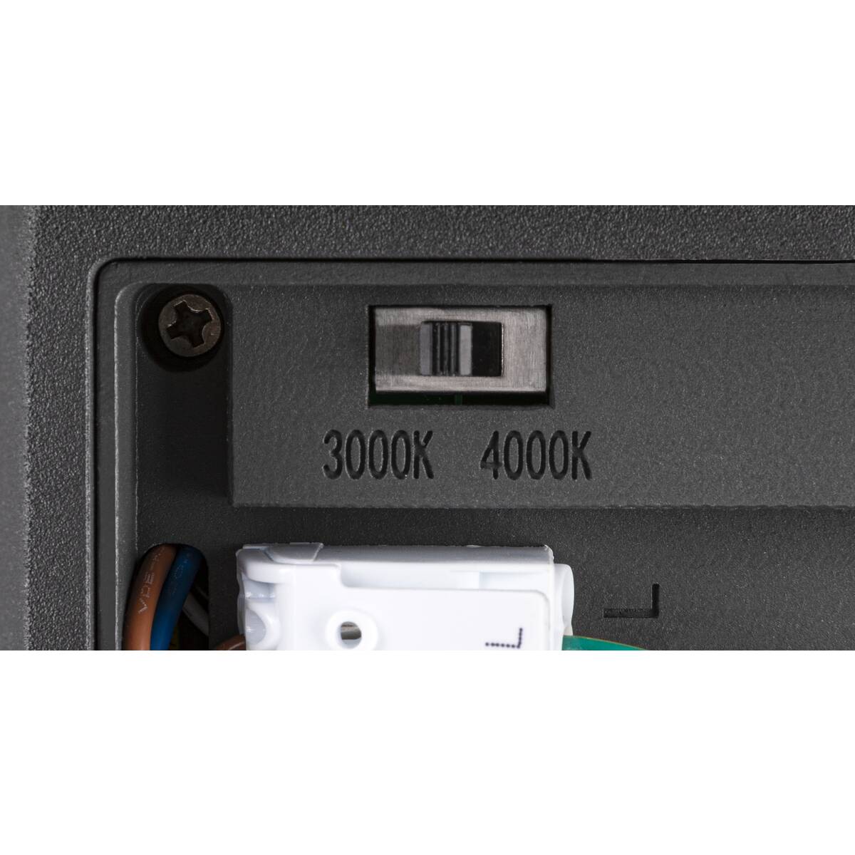 Barwę światła tej mocnej, dwupunktowej oprawy ściennej o strumieniu świetlnym 2200/2400 lumenów można regulować za pomocą przełącznika CCT (3000/4000K)