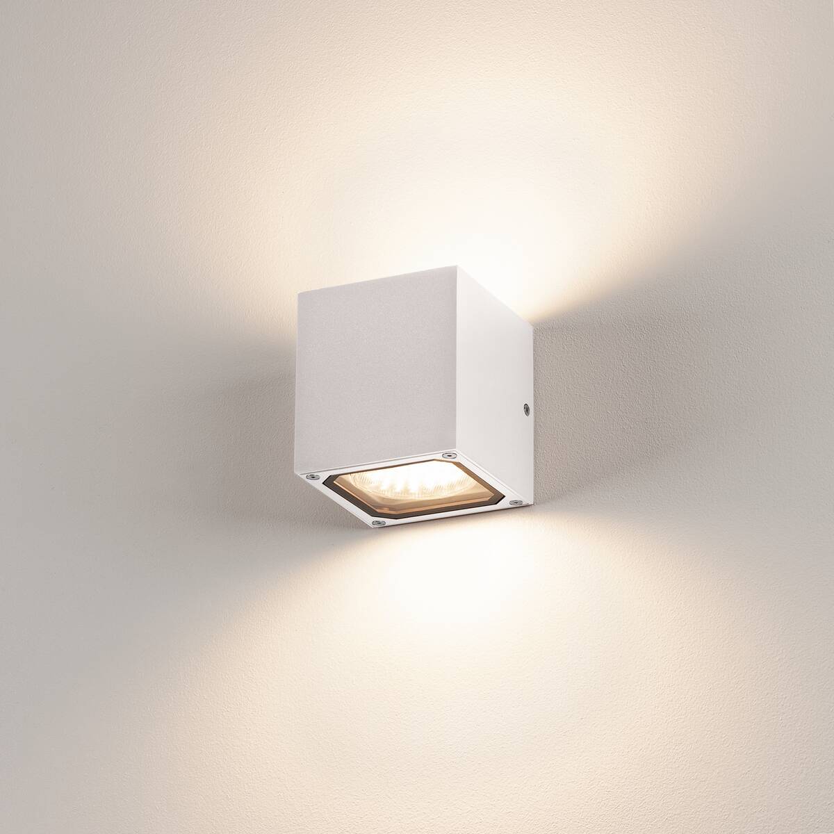 Lampa ścienna SITRA CUBE w kształcie kostki jest wykonana z lakierowanego aluminium