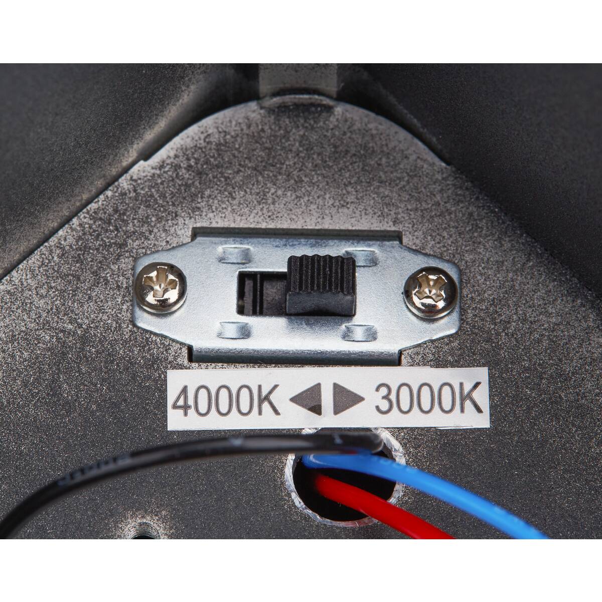 Barwę światła (3000/4000 K) tej lampy zewnętrznej o strumieniu świetlnym 540/610 lumenów należy ustawić przed instalacją za pomocą przełącznika CCT