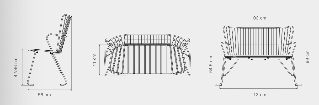 Dostępna jest cała seria mebli ogrodowych PAON - linia składa się z krzeseł jadalnych, fotela wypoczynkowego, fotela bujanego, dwumiejscowej ławki i krzesła barowego.